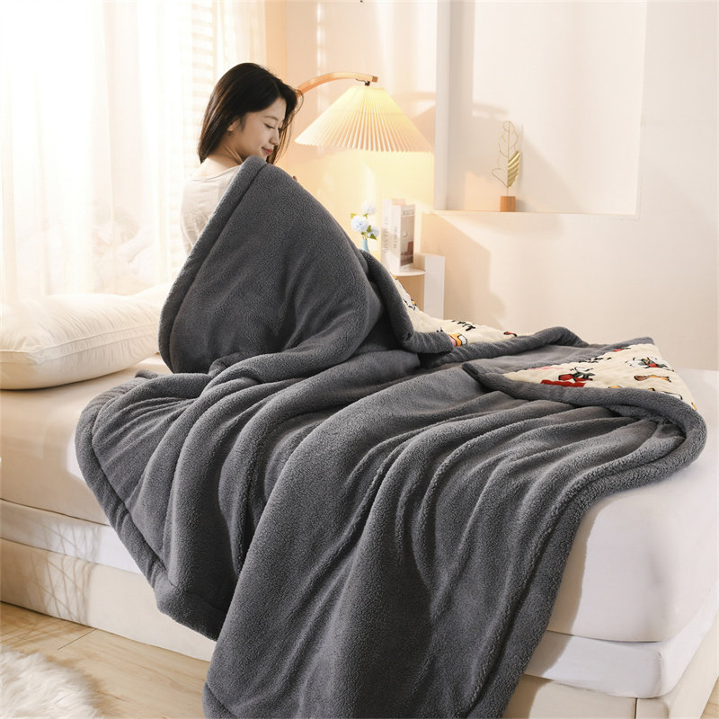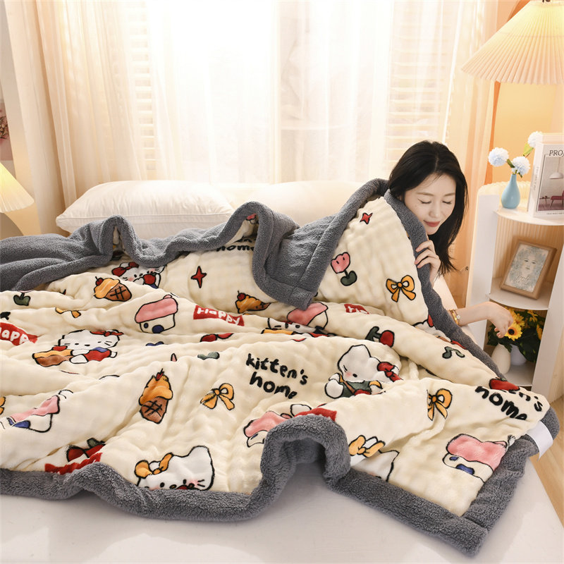 舒棉绒兔毛绒毛毯冬季三层夹棉加厚牛奶绒毯子办公室午睡沙发盖毯