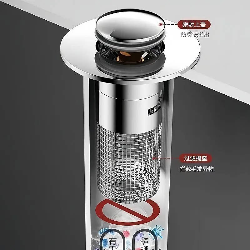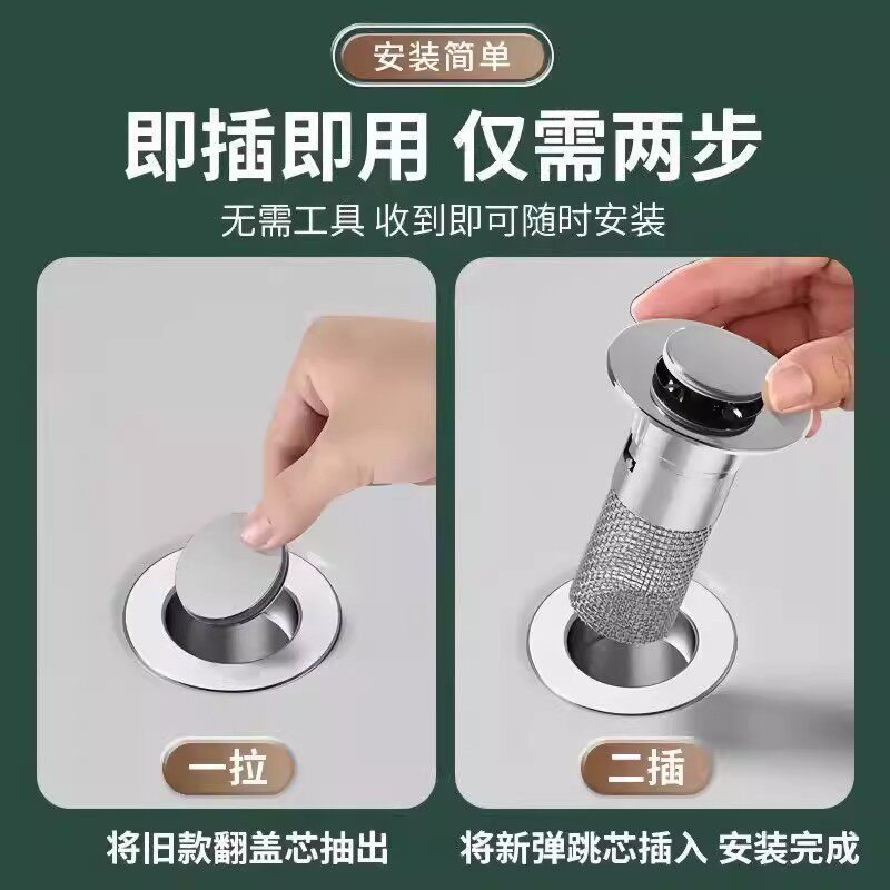 洗手盆脸盆漏水塞子面盆弹跳芯按压式配件防臭通用下水器滤网排水