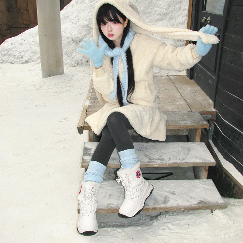 厚底雪地靴长筒2025新款冬季加绒保暖内增高中筒东北灰色高筒棉鞋