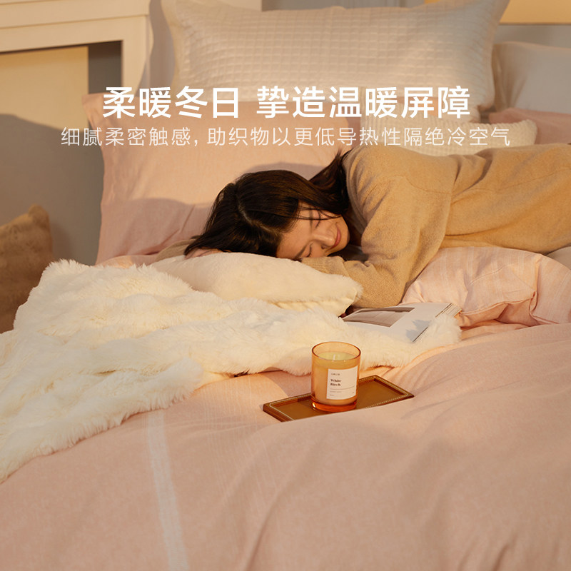 罗莱家纺U易套秋冬新品60支全棉磨毛四件套加厚保暖1.8m双人套件