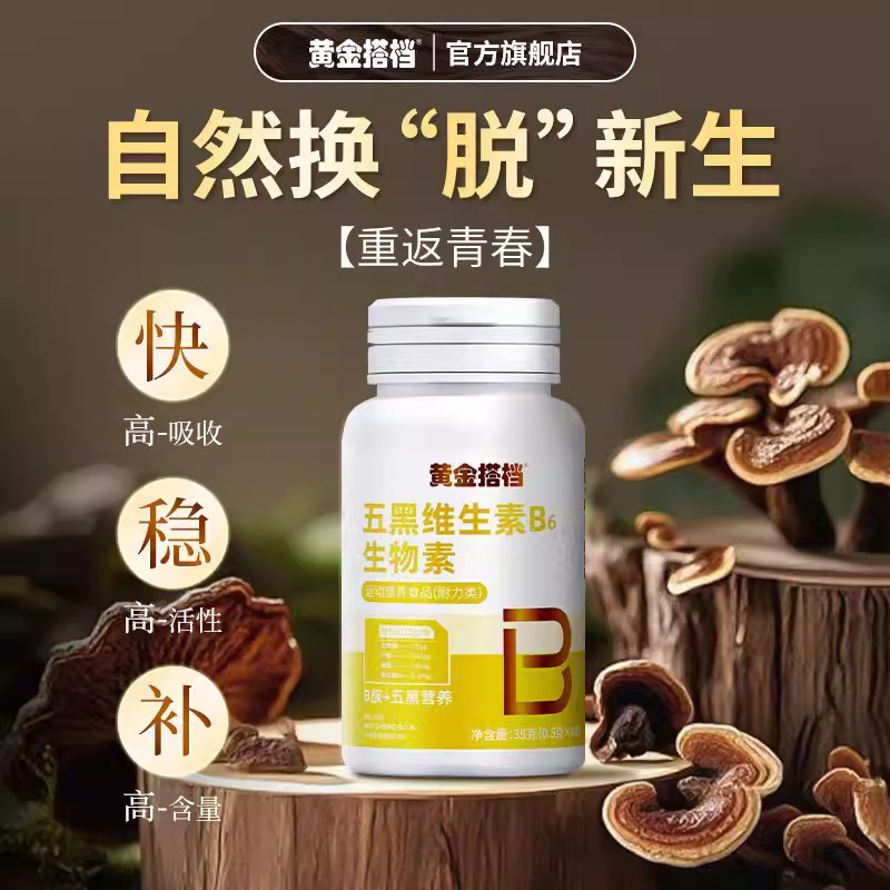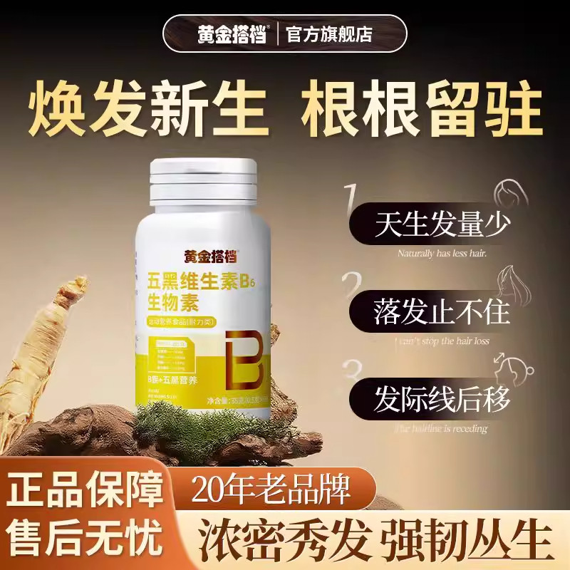 黄金搭档维生素B6生物素叶酸强力白转黑防脱发生发黑发复合健康