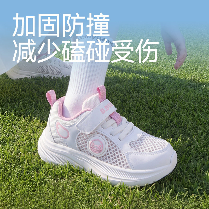 小黄鸭童鞋儿童小白鞋男童2026春夏网面透气校园儿童白色运动鞋子