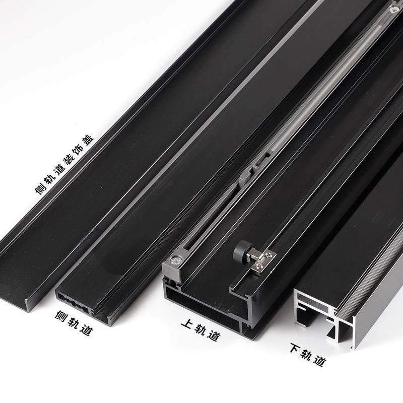 铝框幽灵门五金通顶玻璃门双向缓冲推拉门吊滑无轨平移门全套配件