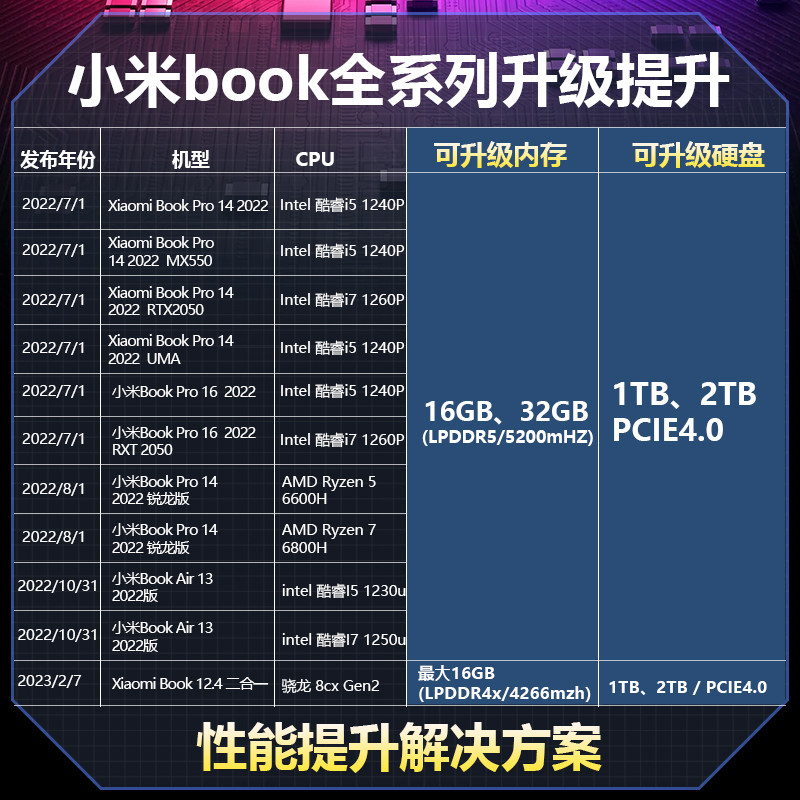 小米AIR/PRO/BOOK电脑主板维修内存升级16G/32G硬盘CPU电池更换