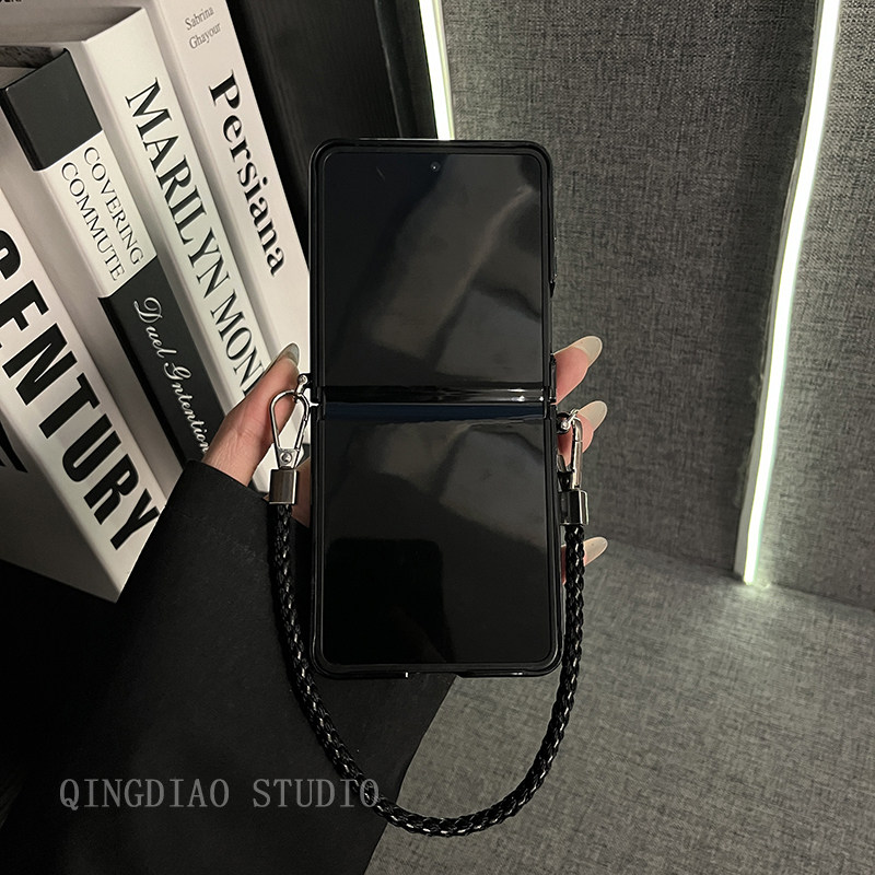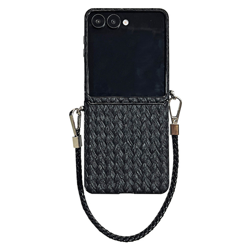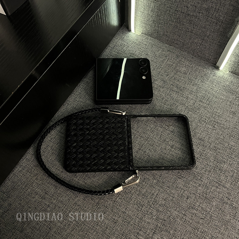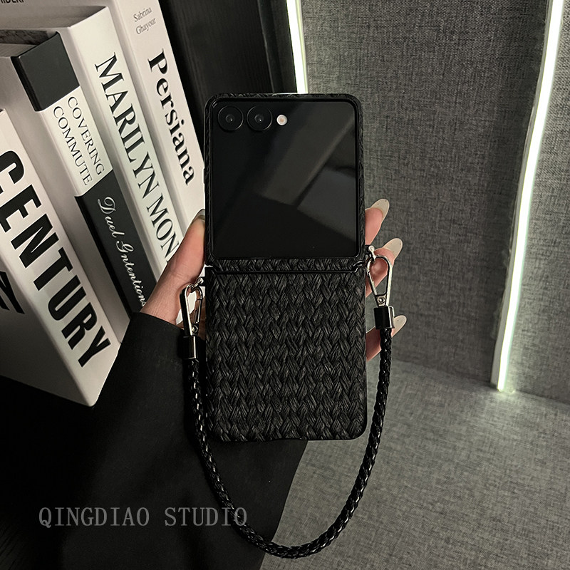 轻调 时尚超酷黑色草席纹手提绳适用于三星zflip7/6/5/4/GalaxyW25Flip手机壳新款折叠屏翻盖小众防摔保护套