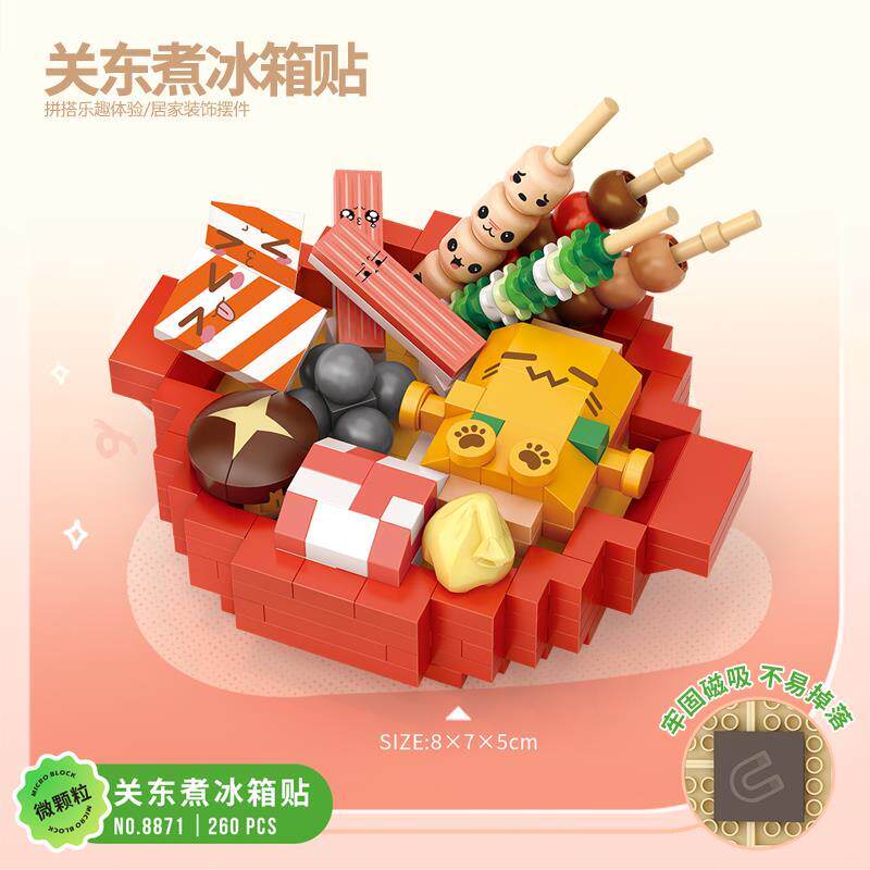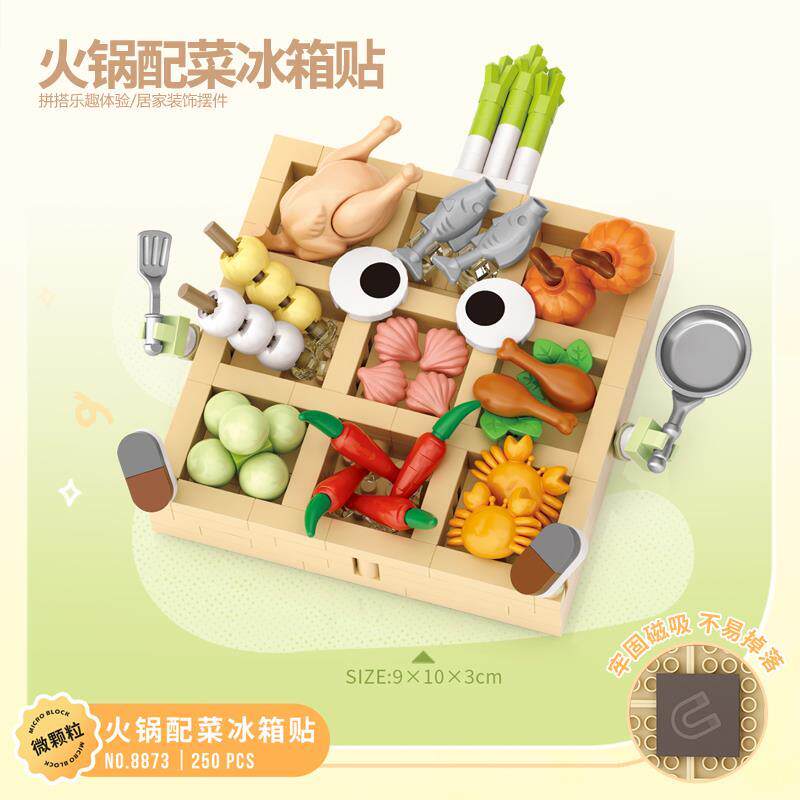 积木 美食冰箱贴DIY创意装饰摆件海鲜火锅玩具拼装牛兼容乐高