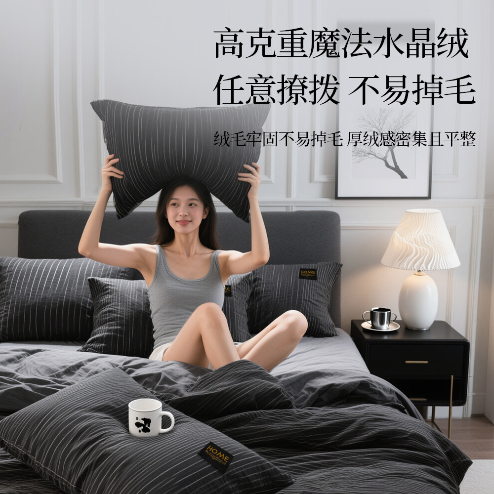 无印良品纯色秋冬牛奶绒四件套珊瑚绒床上绒三件套冬季加绒法兰绒