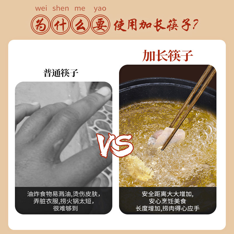 长筷子油炸耐高温鸡翅木火锅筷加长筷厨房专用油锅捞面防霉抗菌