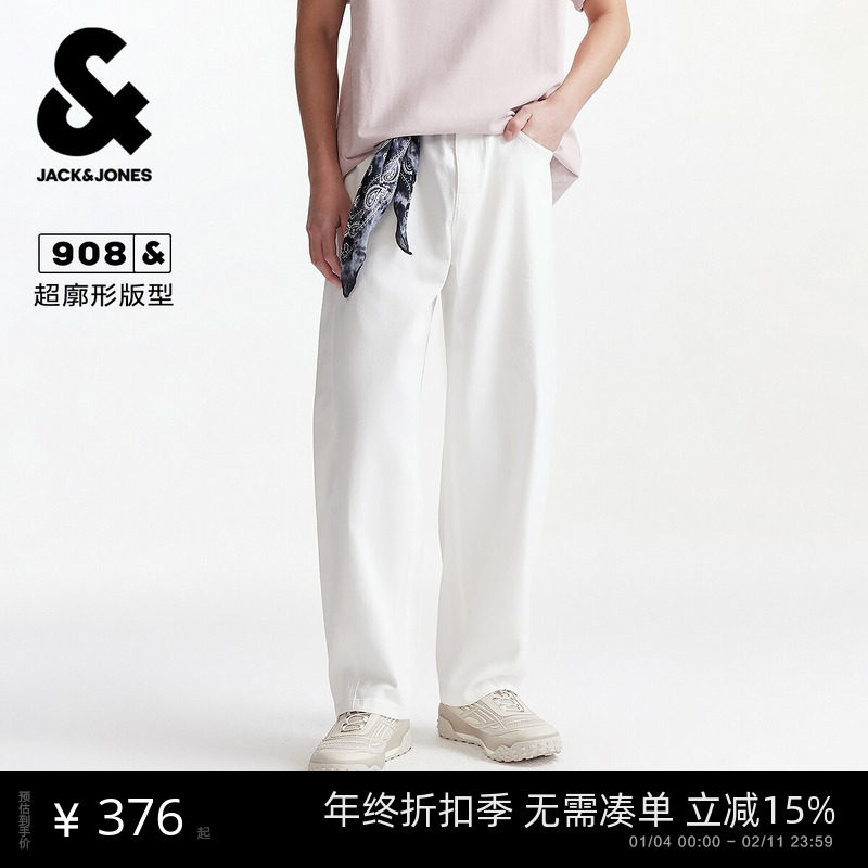 908杰克琼斯男装春季白色牛仔裤美式弯刀裤宽松阔腿裤男款长裤子