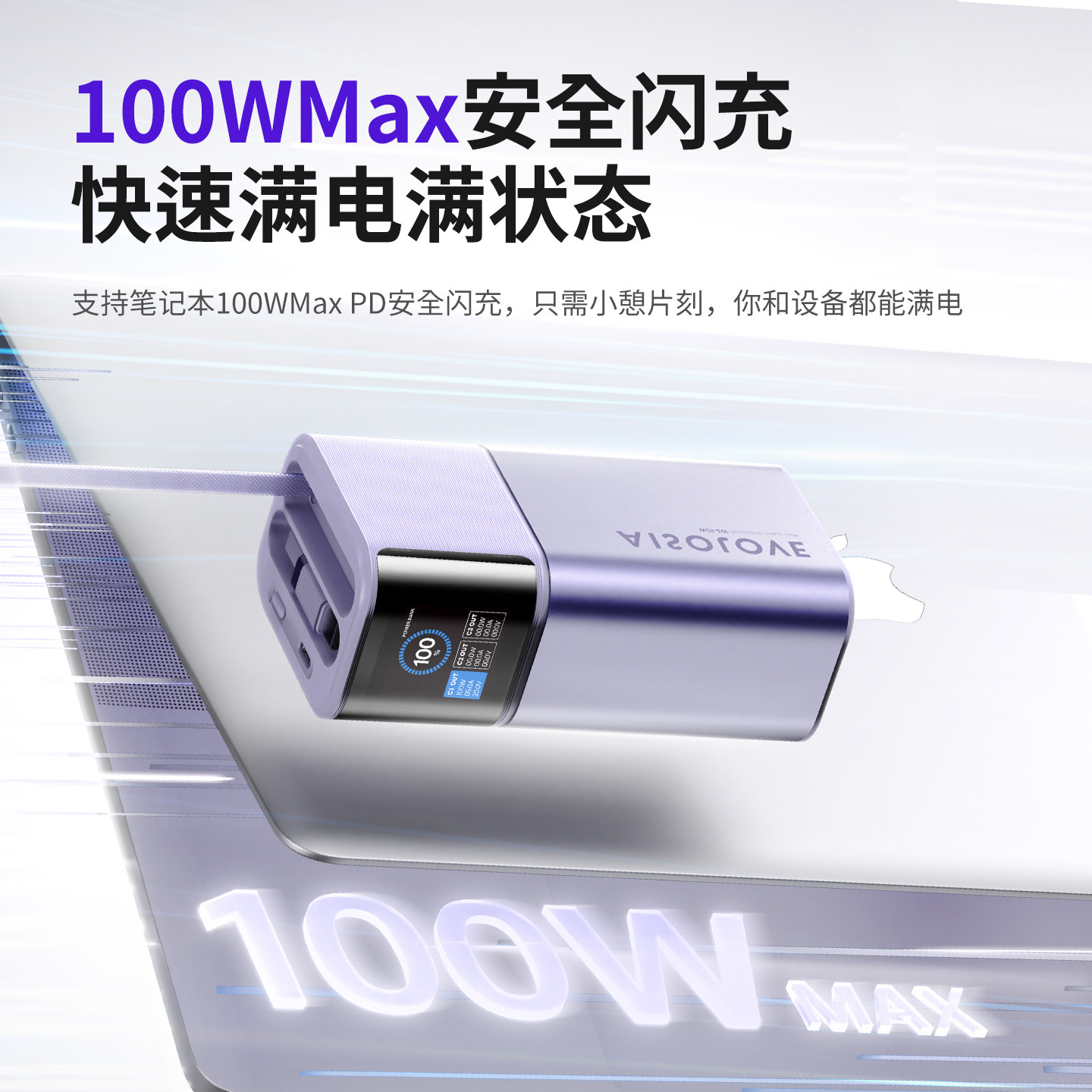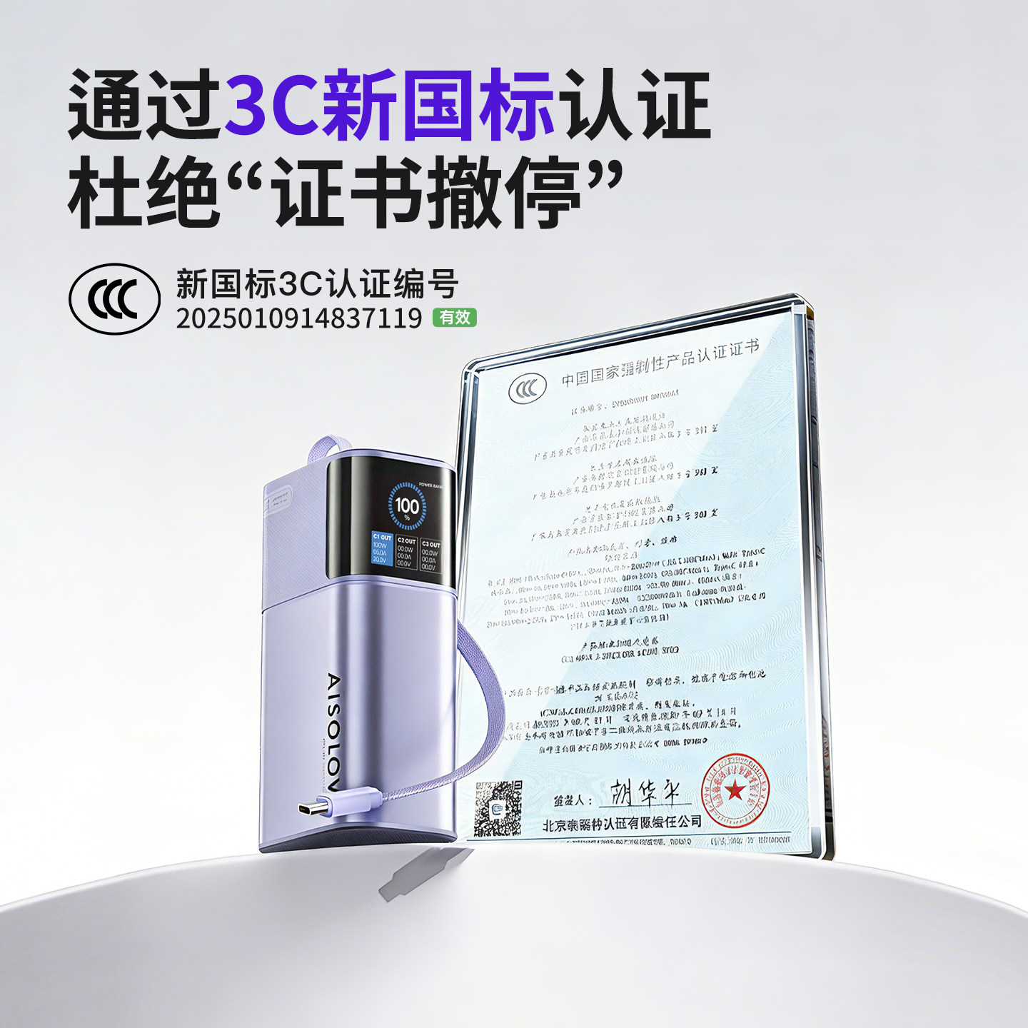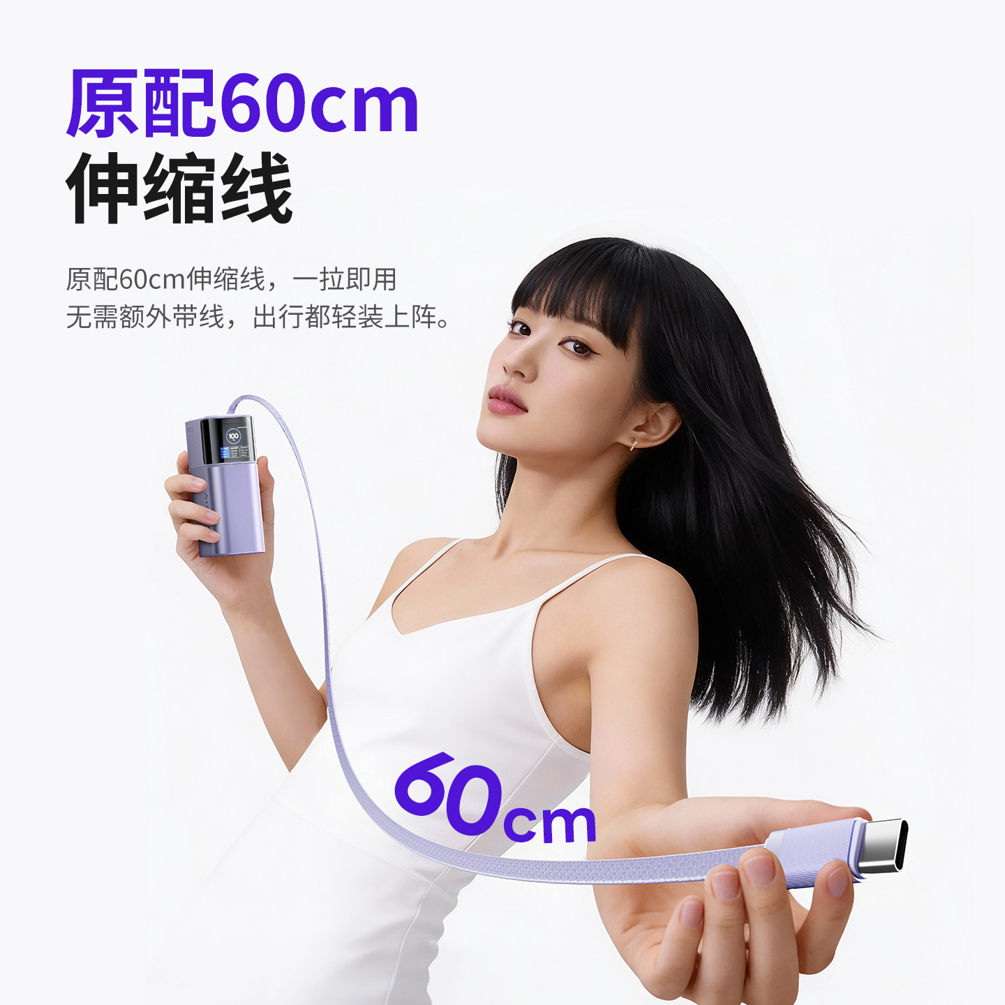 【充电宝3C认证可上飞机】素乐2026新款自带双伸缩线充电宝20000毫安100W快充移动电源适用苹果17官方旗舰店