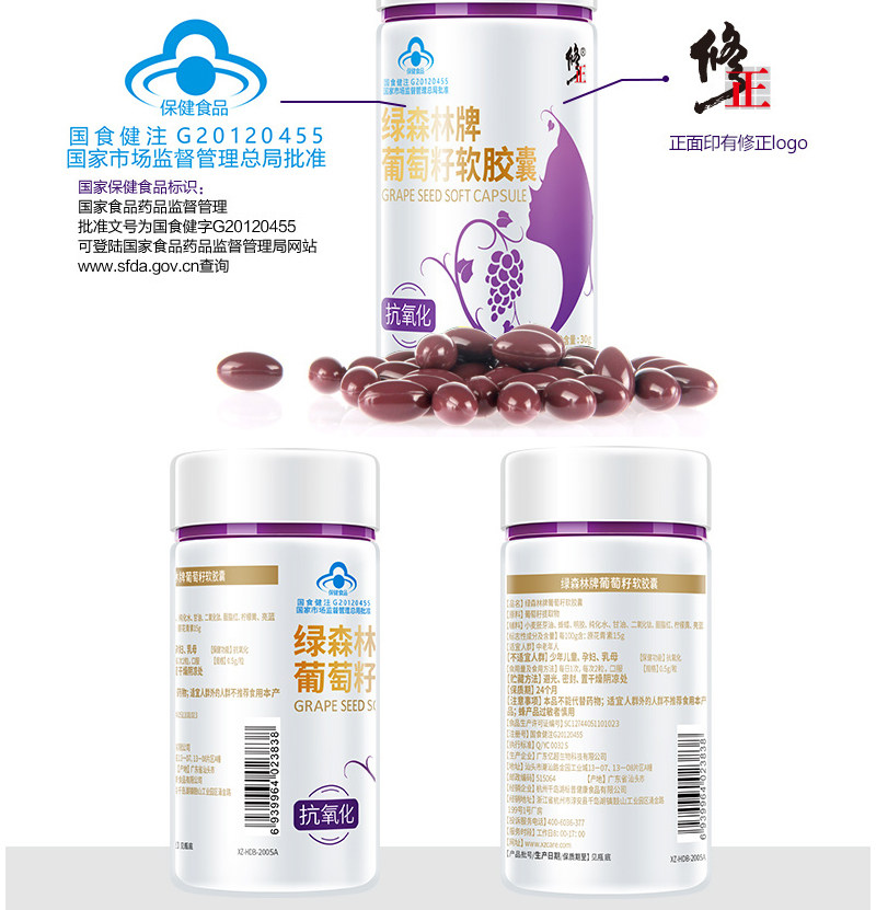 修正葡萄籽软胶囊0.5gx60粒绿森林牌葡萄籽提取物原花青素抗氧化