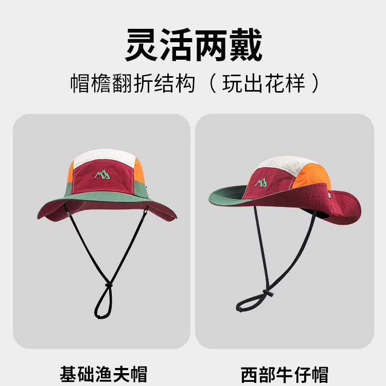 夏季登山速干薄款渔夫帽女户外透气防晒遮阳帽男西部大帽檐牛仔