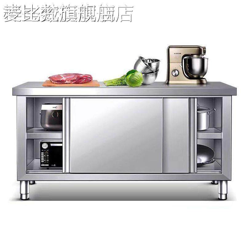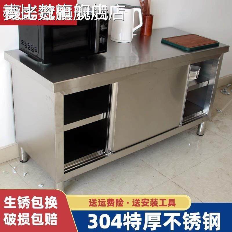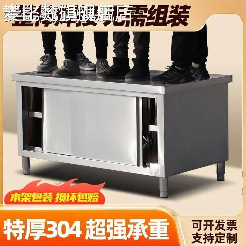 麦比梵整体焊接304特厚1.0不锈钢拉门工作台厨房橱柜操作台厨房酒店放碗床笠拉车