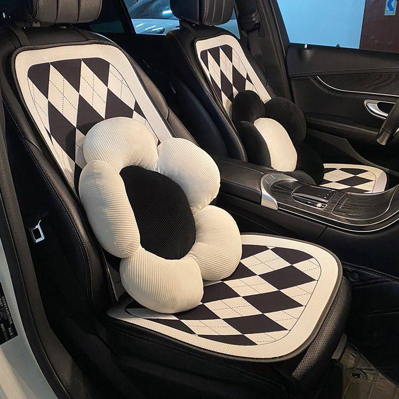 汽车坐垫通用四季夏季车座套网红菱格透气车载座椅套半包座垫通风