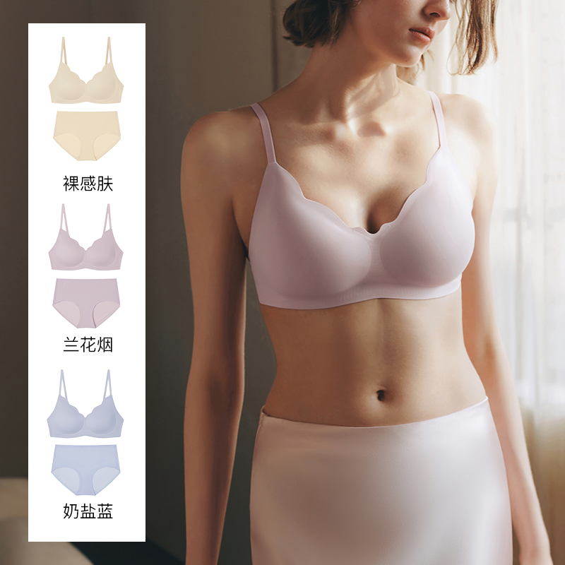 ubras经典软支撑小花瓣小胸聚拢无痕细吊带舒适文胸内衣套装女