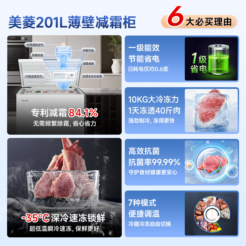 美菱官方201L小冰柜冷冻冷藏家用小型商用冷柜冰箱换新补贴