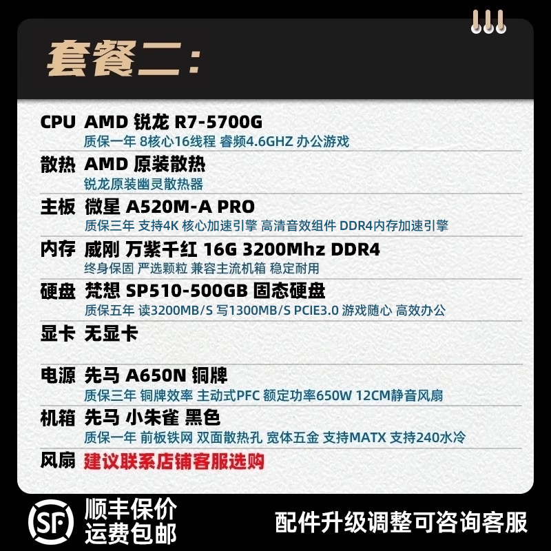 装机猿玩家店AMD-5600GT/5700G 核显/无显卡爆款好物办公游戏主机