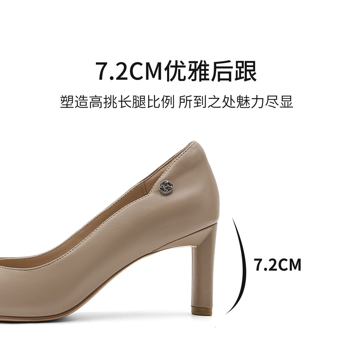 【明星同款|静音系列】千百度练习曲裸色高跟鞋真皮通勤法式单鞋