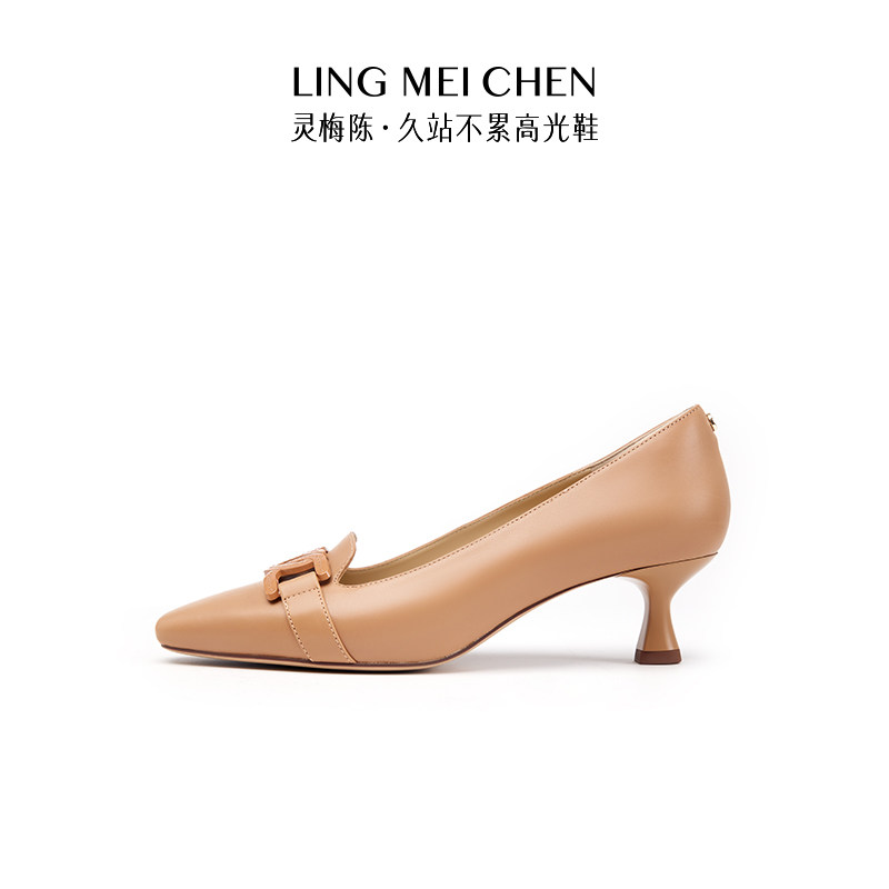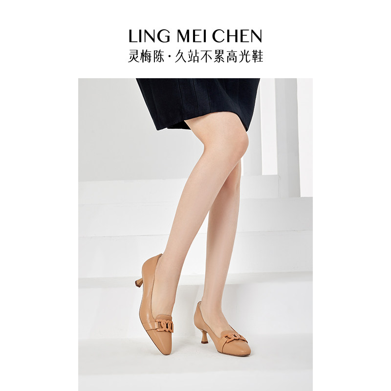 LINGMEICHEN爱心扣女鞋高跟鞋细跟乐福鞋法式气质通勤单鞋小皮鞋