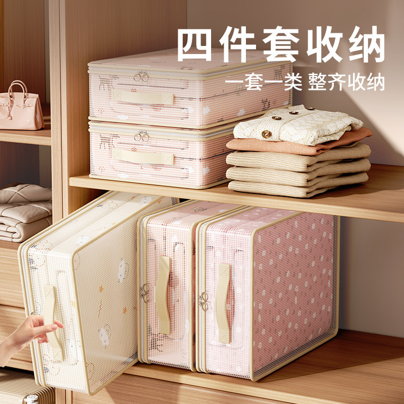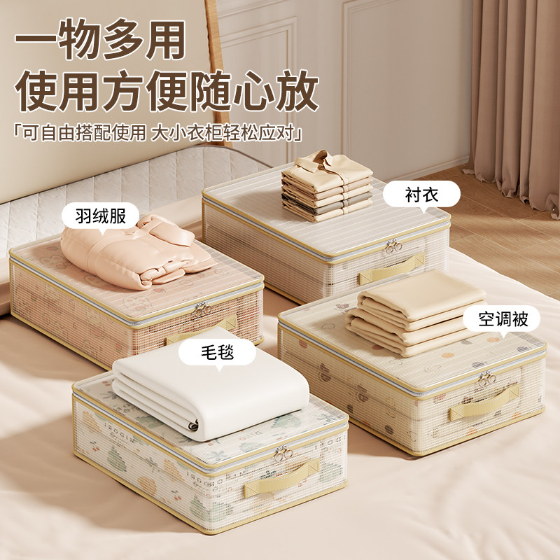 网纱四件套收纳袋家用卧室大容量防尘防潮整理盒可视窗被子防尘袋