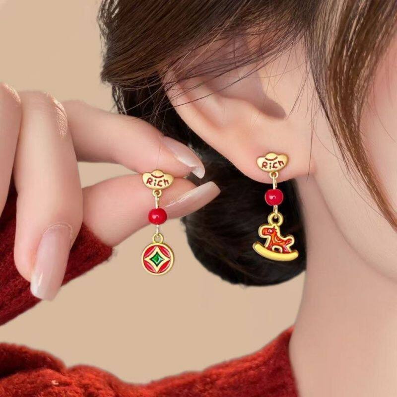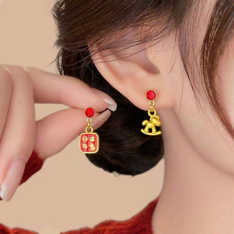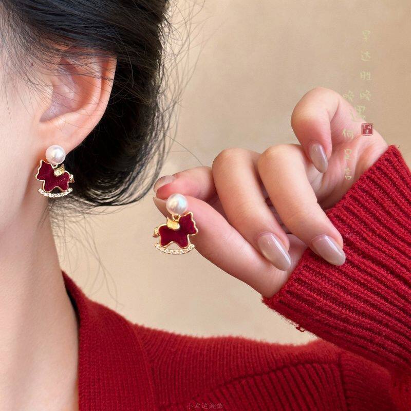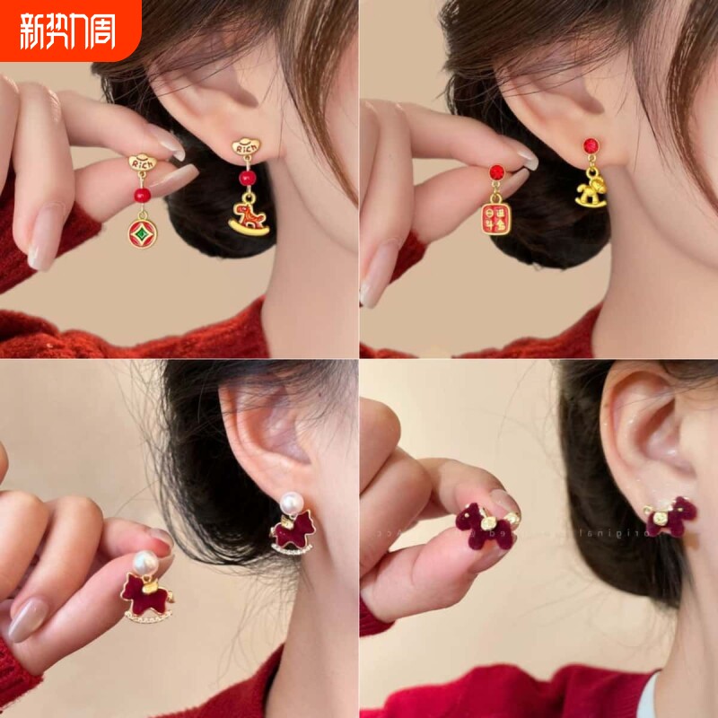 马到功成红色新年生肖耳夹独特耳环2025新款爆款高级感耳钉耳饰女