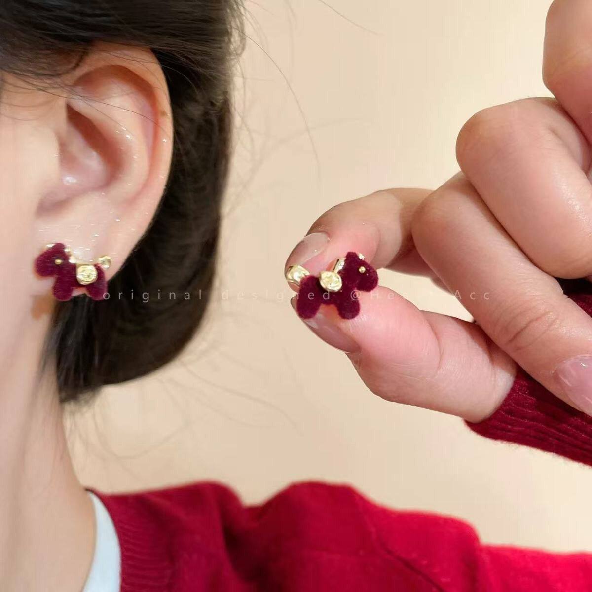 999纯银耳针耳环圈圈大圈秋冬红色耳饰女耳圈高级感轻奢素圈耳夹