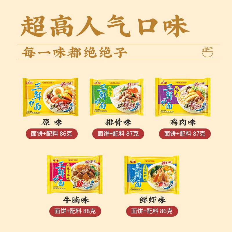 华丰三鲜伊面86g*24整箱袋装方便面80后怀旧速食食品干吃老式泡面