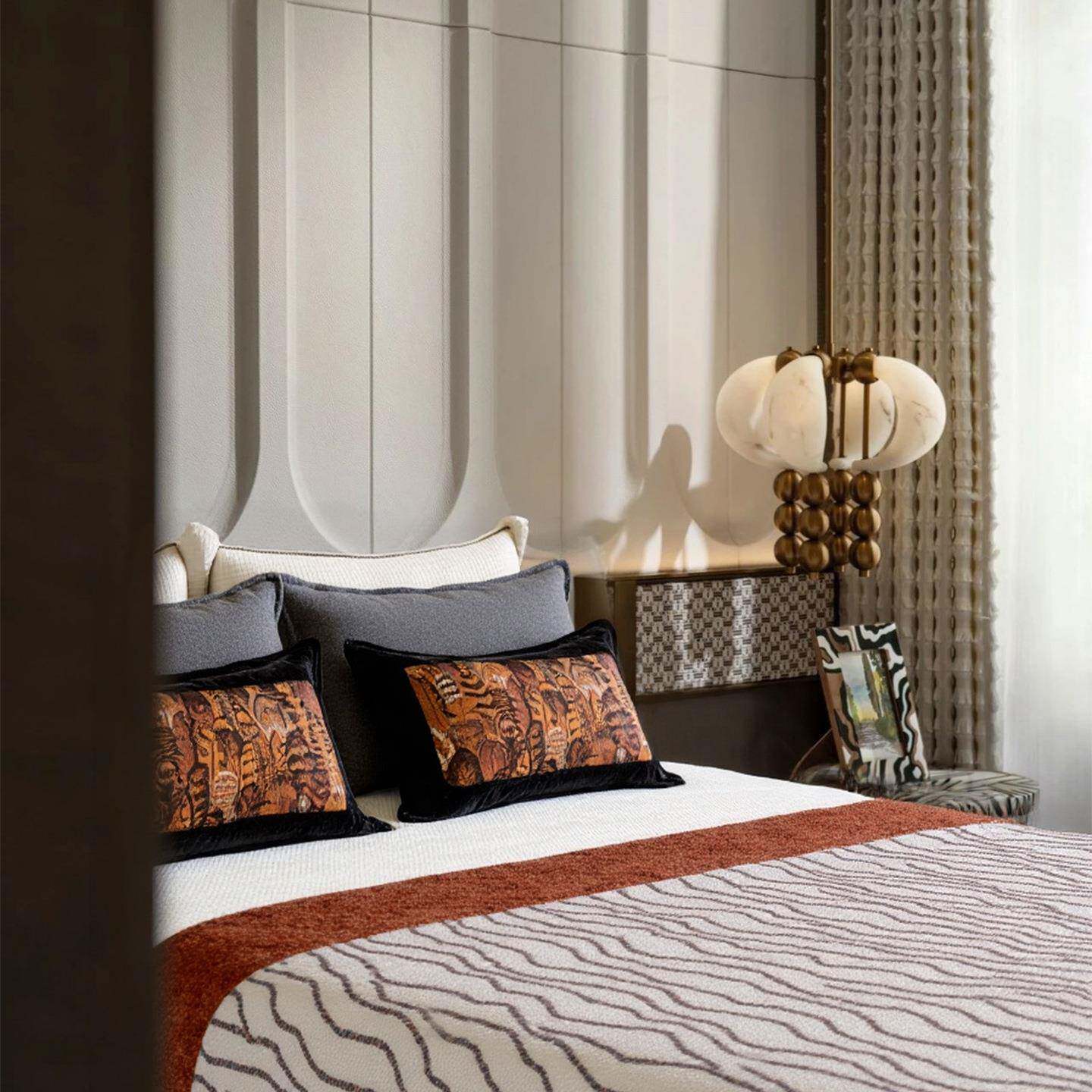 轻奢复古艺术风驼棕色系床品抱枕套件样板间酒店展厅靠垫软装组合