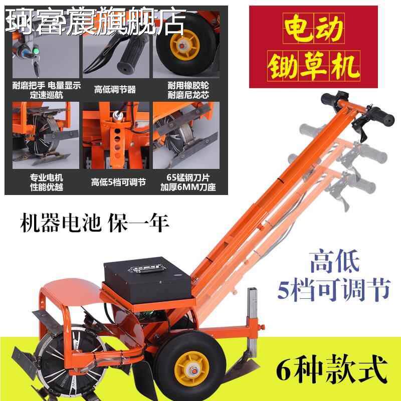 珂富宸电动除草机带开沟松土犁地翻土家用一体机充电小型农用锄草微耕机床笠拉车