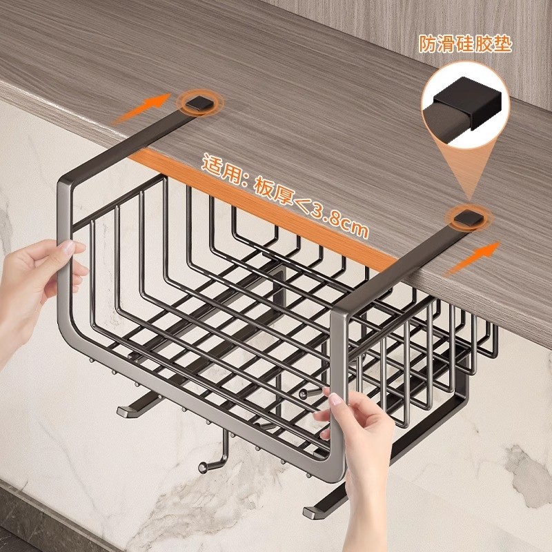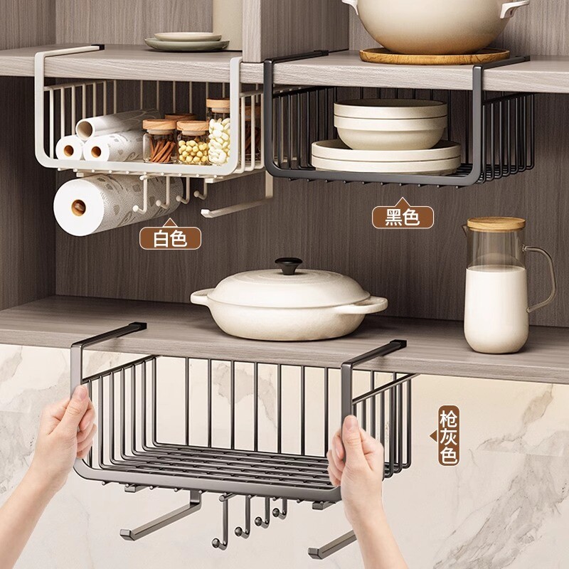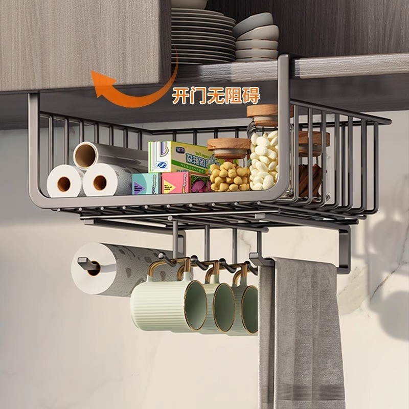 厨房置物架收纳下橱柜挂架纸巾架挂篮分层架储物架调料台面保鲜膜