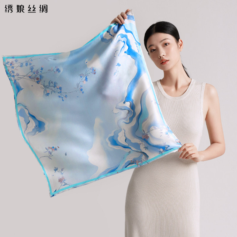 绣娘丝绸真丝丝巾女100%桑蚕丝方巾女友生日礼物高级礼盒新款围巾