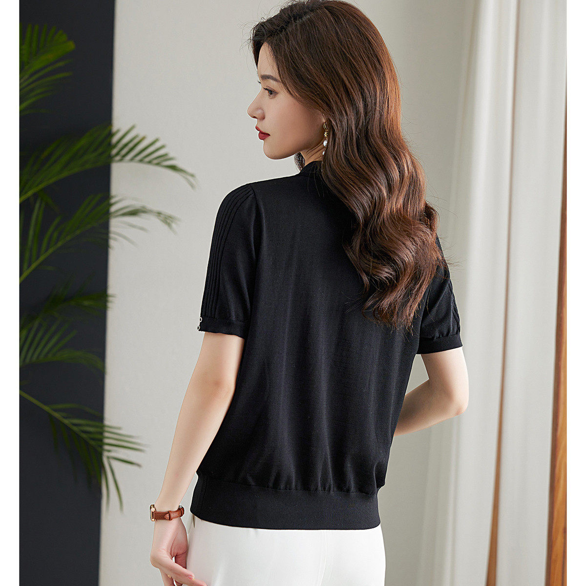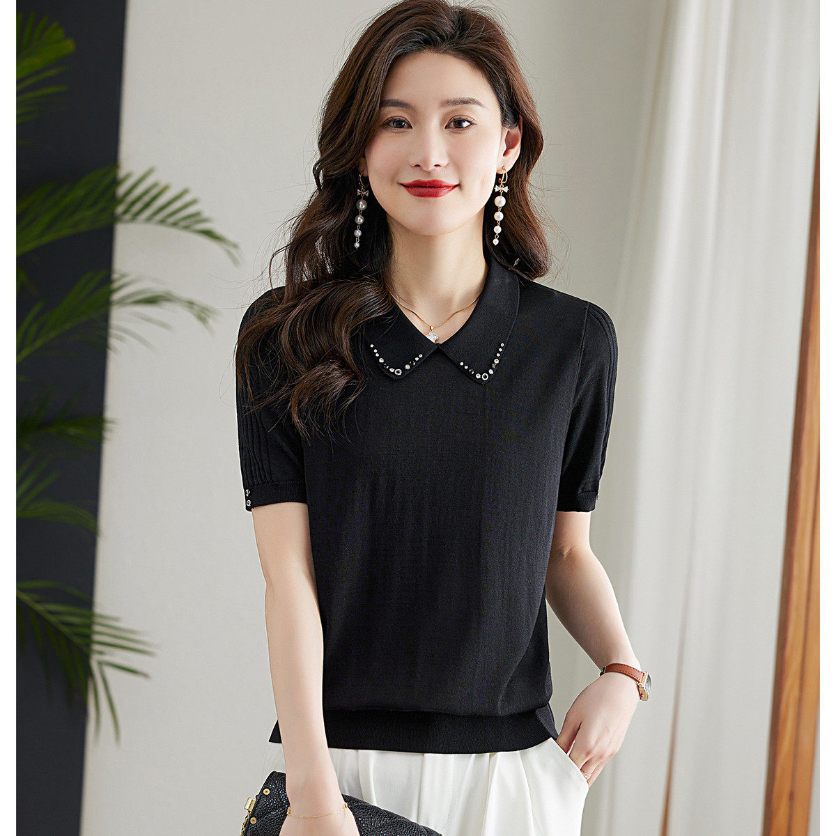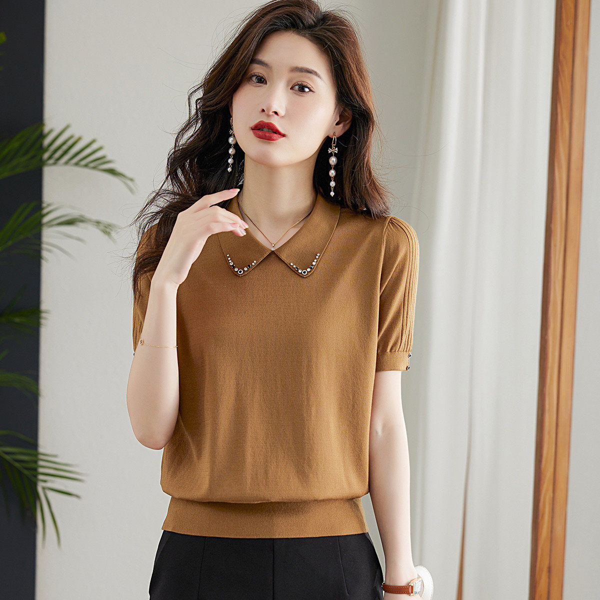 2026春夏季短袖t恤女优雅气质中年妈妈装翻领针织短袖T恤