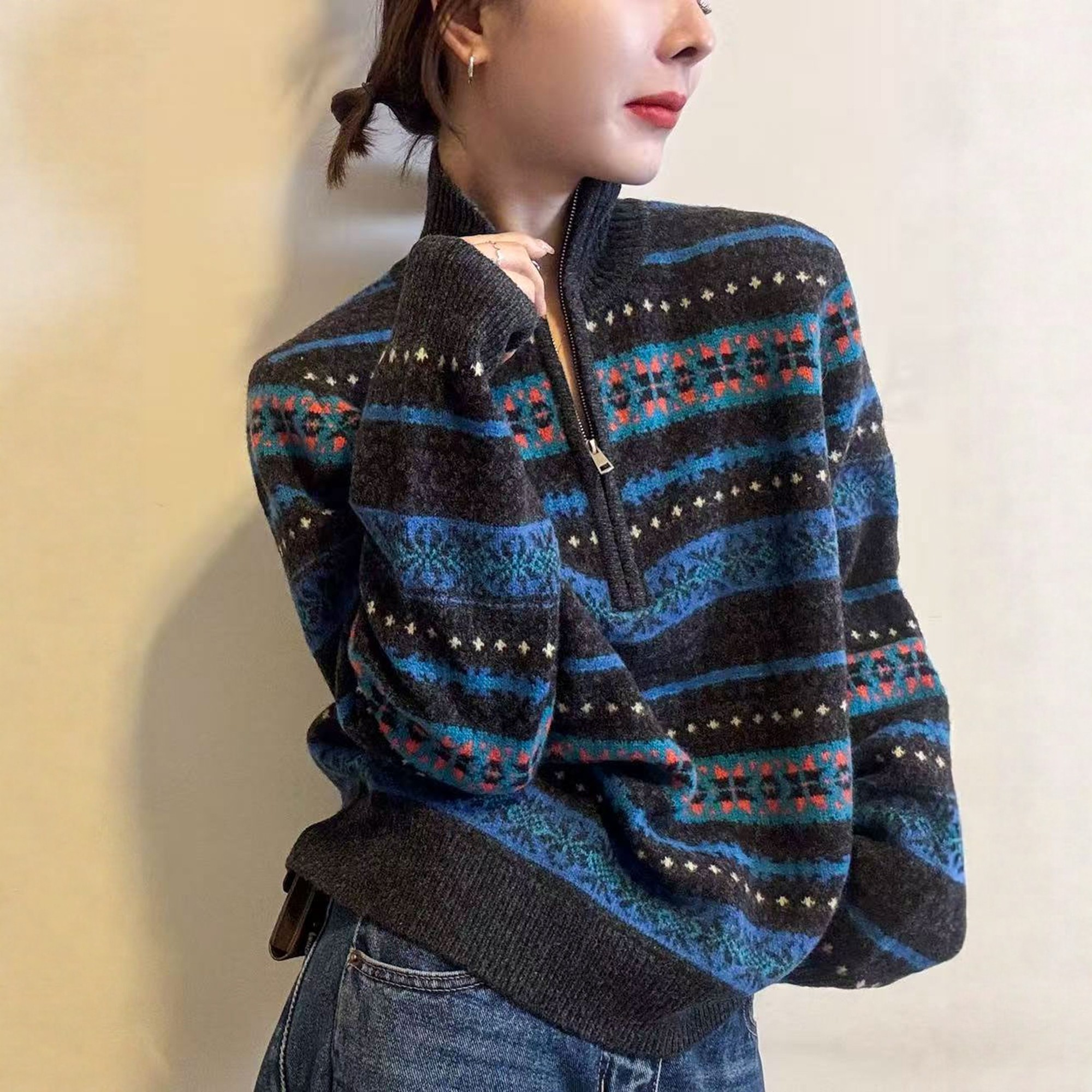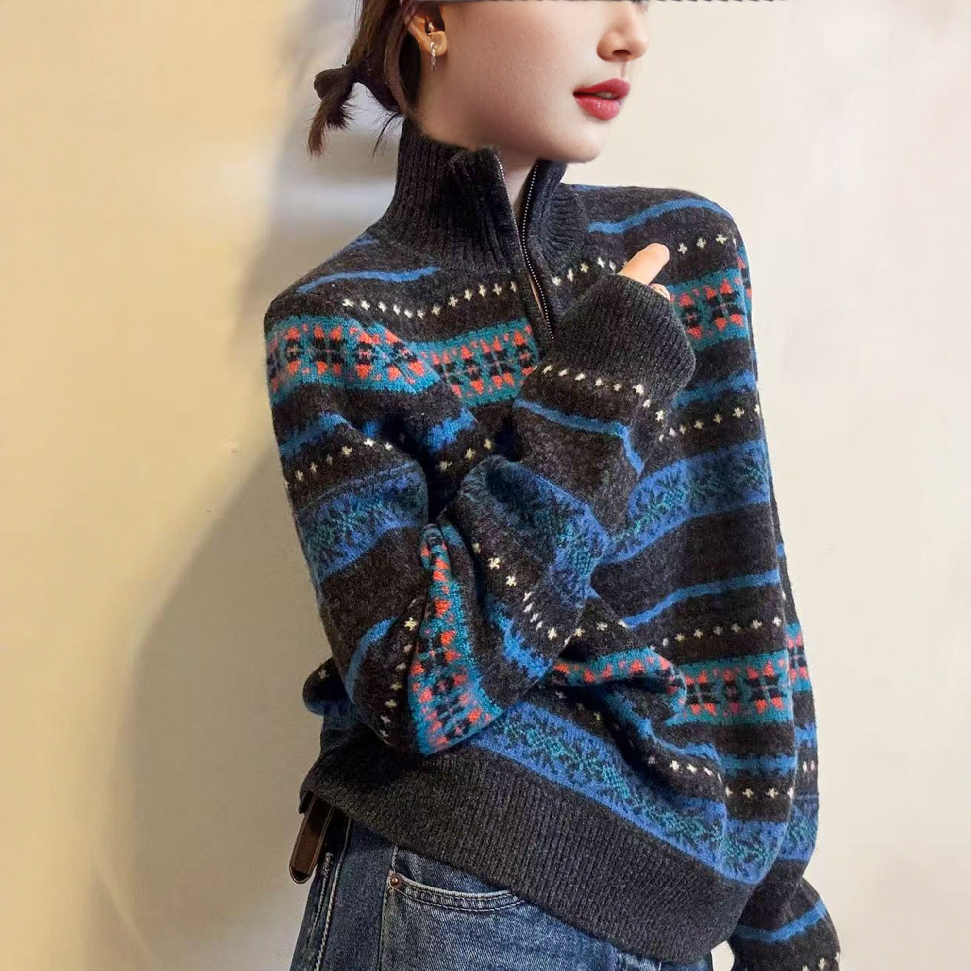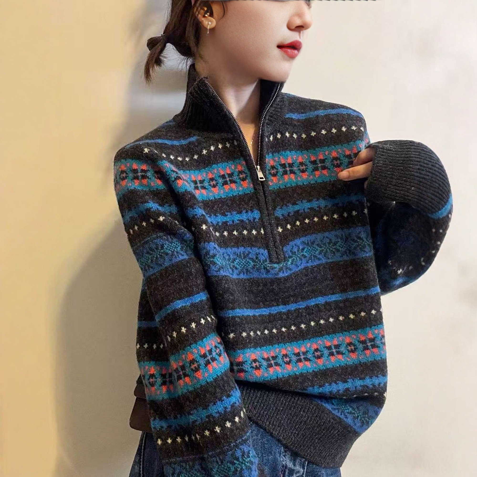 费尔岛提花高领羊毛针织衫女欧洲站2025冬装新款欧货女装打底衫潮