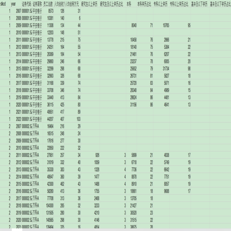 2007-2022 年 上市公司人员结构/员工构成/人力资本情况,可计算