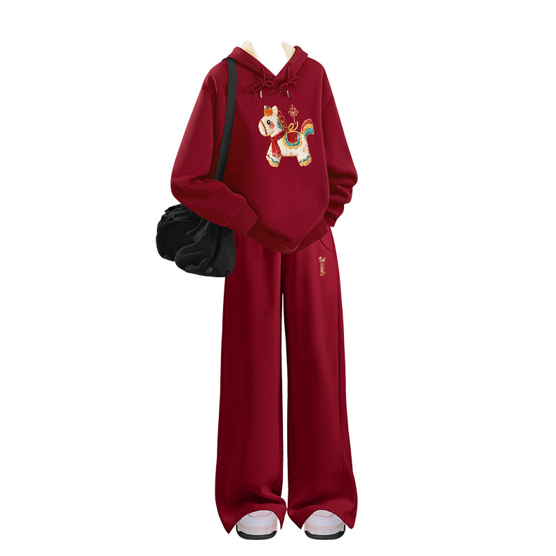 都市丽人红色运动套装女冬季2026本命年过年衣服加绒卫衣一整套Y