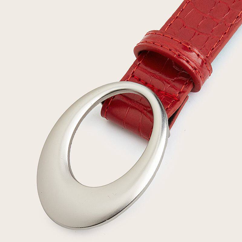 美式复古千禧辣妹鳄鱼纹路红色腰带简约高级感休闲百搭y2k皮带ins