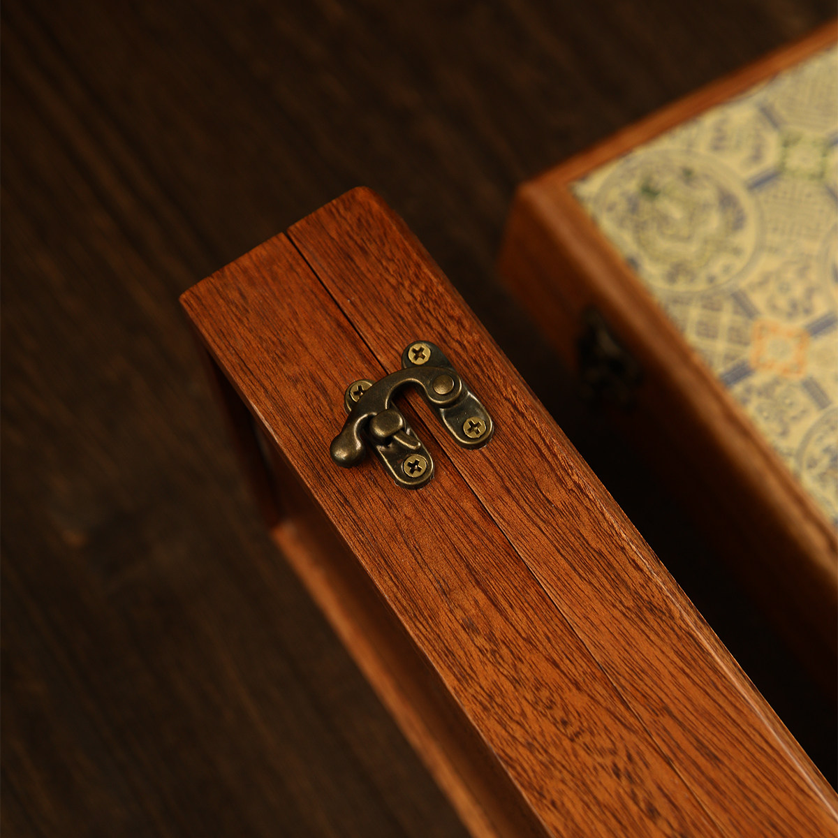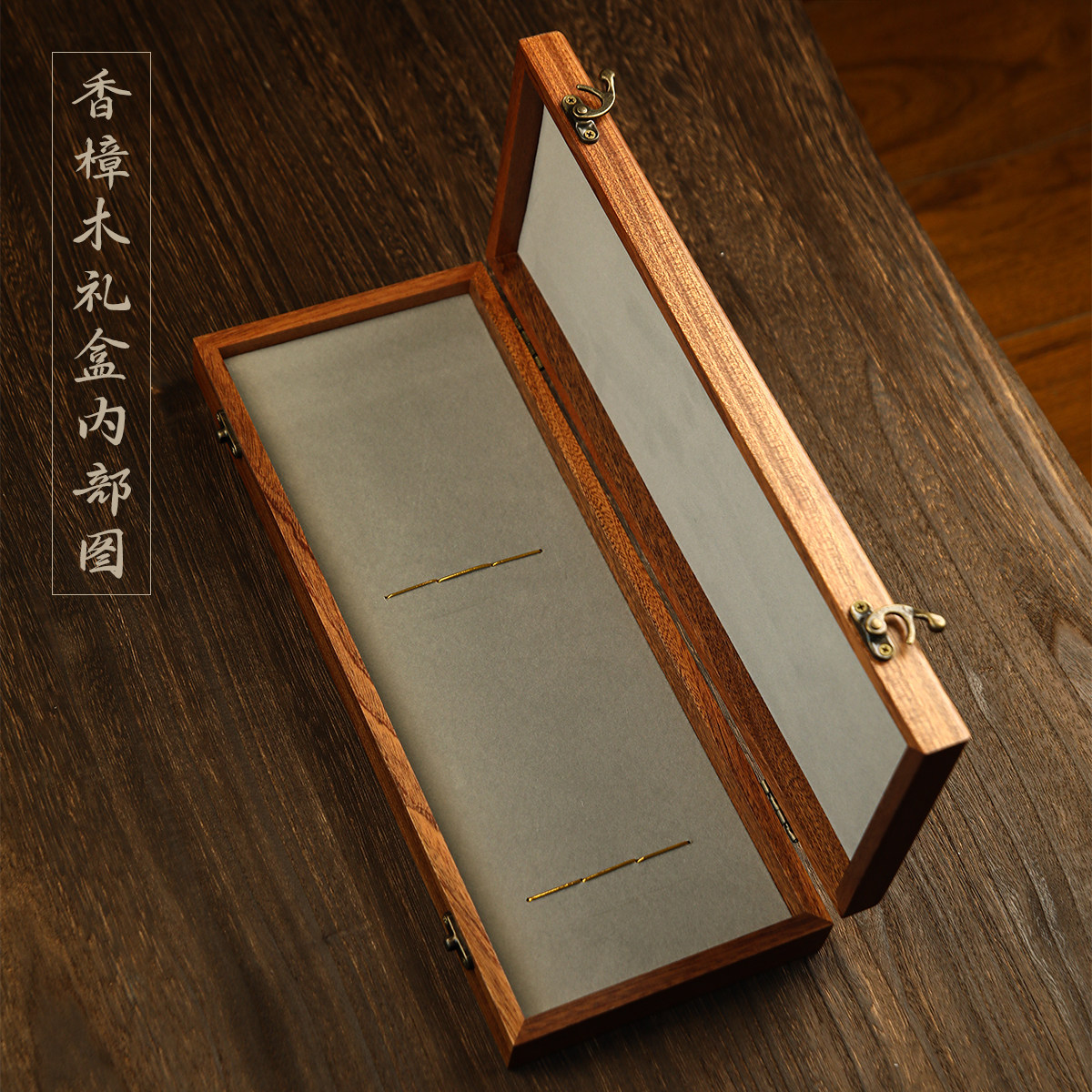 锦瑟文房香樟木毛笔礼盒三支装笔收纳收藏书法作品古董文玩送礼盒