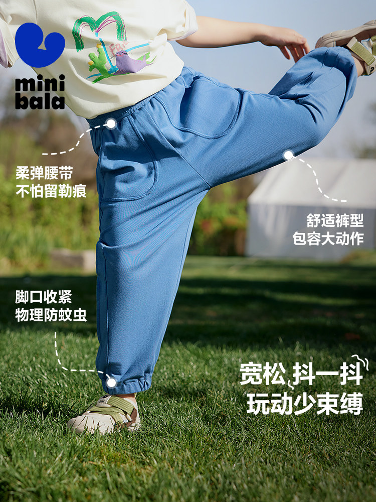 【抖抖裤】迷你巴拉巴拉男女童防蚊裤宝宝儿童裤子夏凉感抗菌长裤