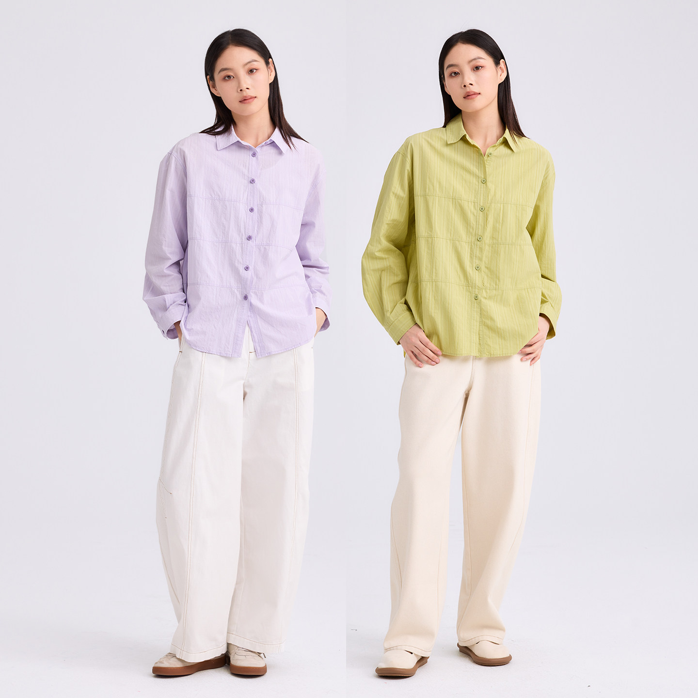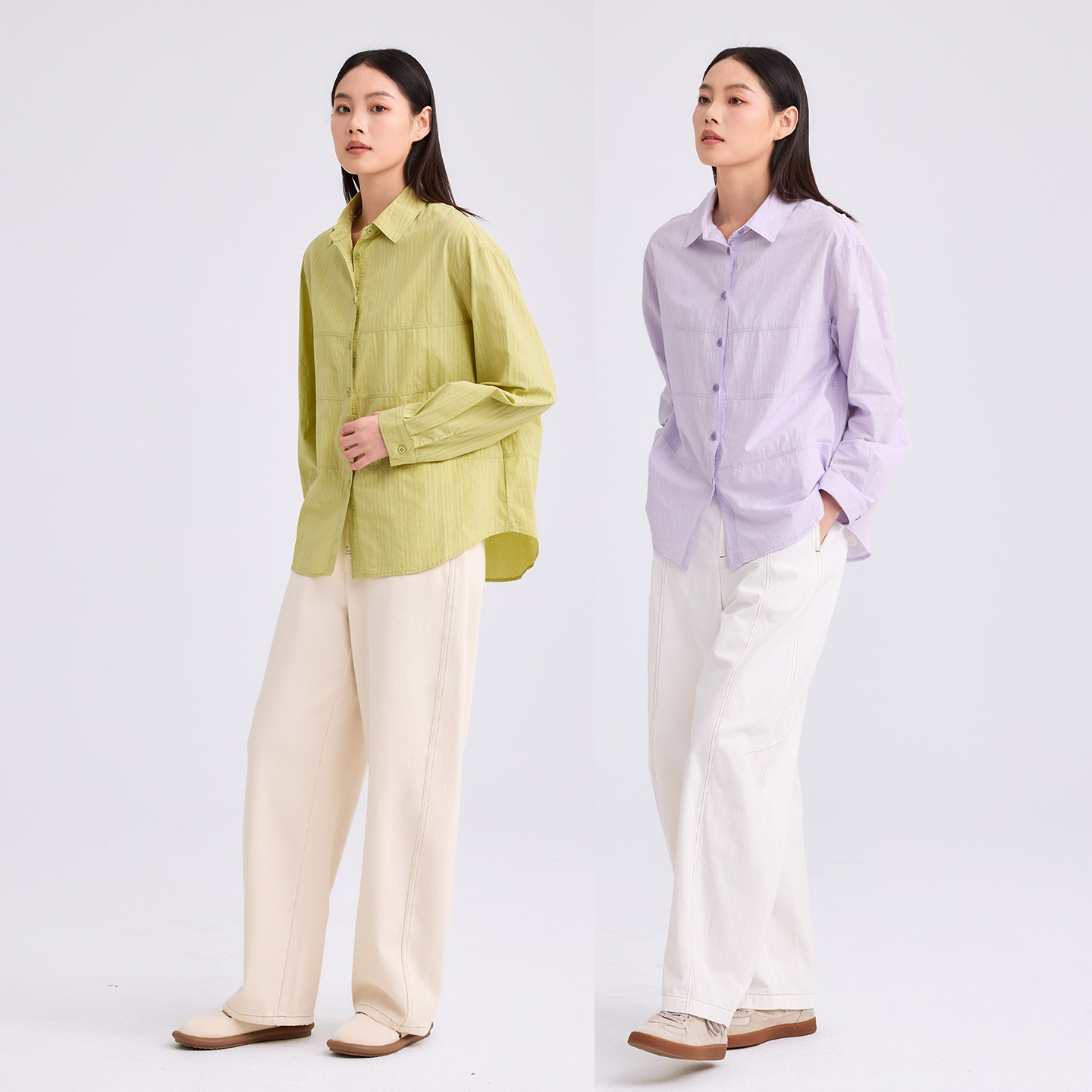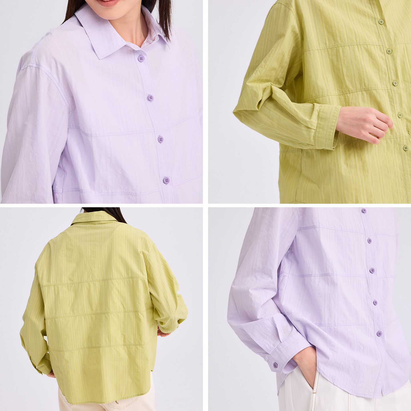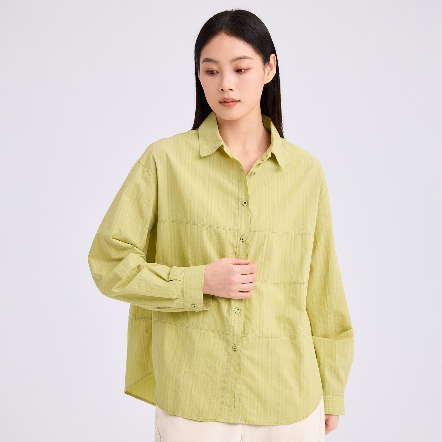 无色无味衬衫女2026新款纯棉肌理感遮臀衬衣休闲拼接棉质直身上衣