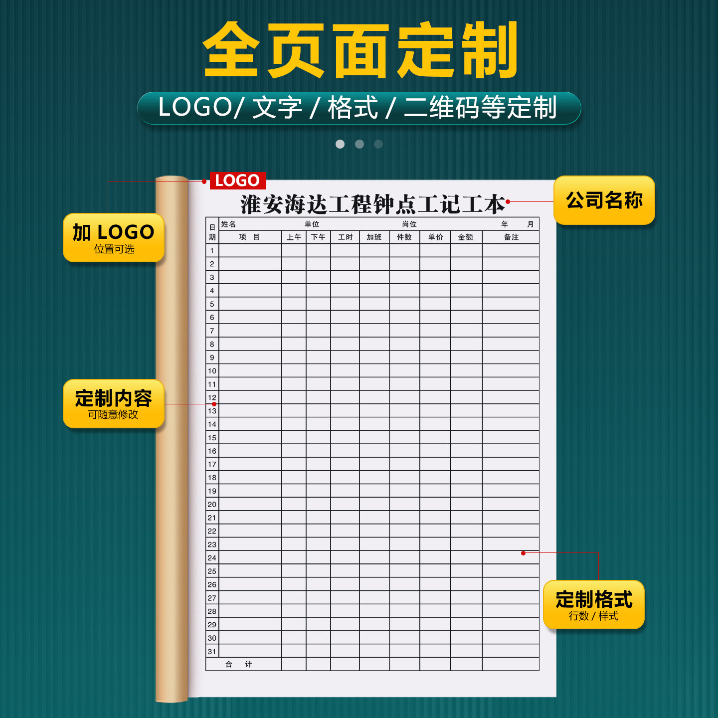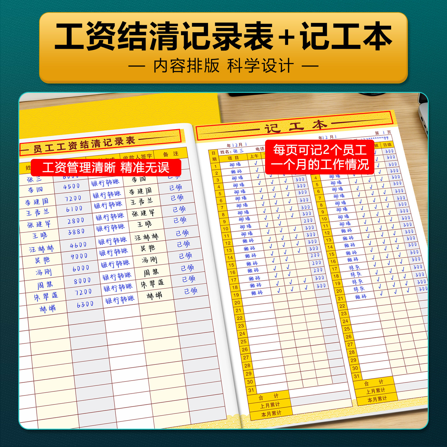 【钟点工专用记工本】2026新款个人记件记工簿建筑工地小时工上班工时记录本短工出勤加班登记簿大格子考勤表