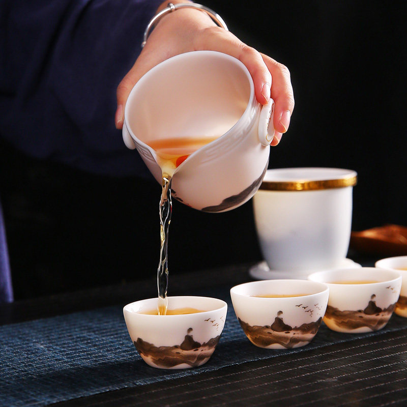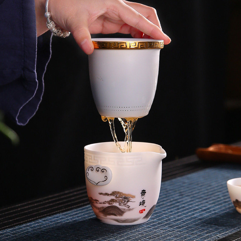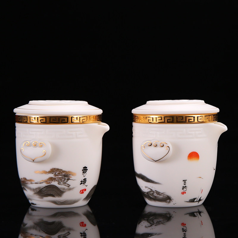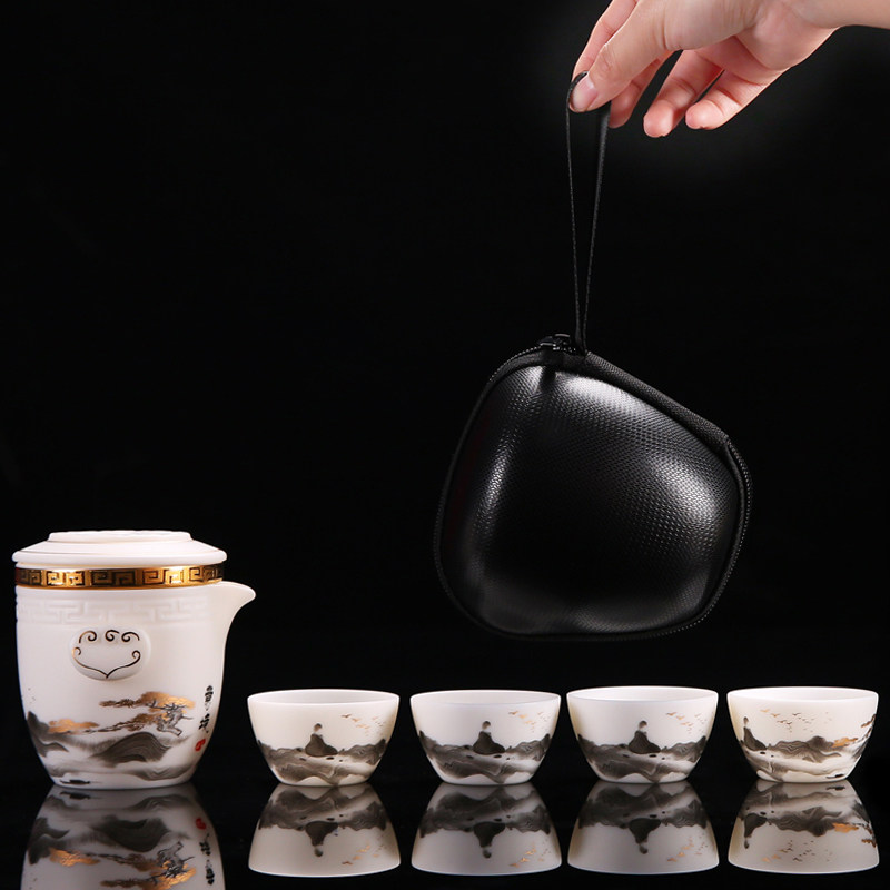 唐舍中国风复古旅行茶具套装羊脂玉瓷快客杯一壶四杯便携式泡茶壶