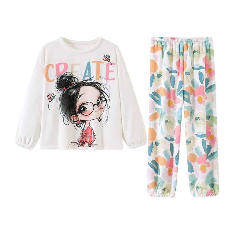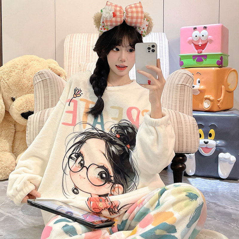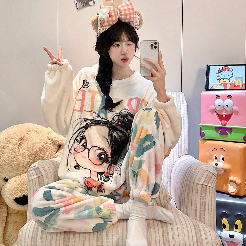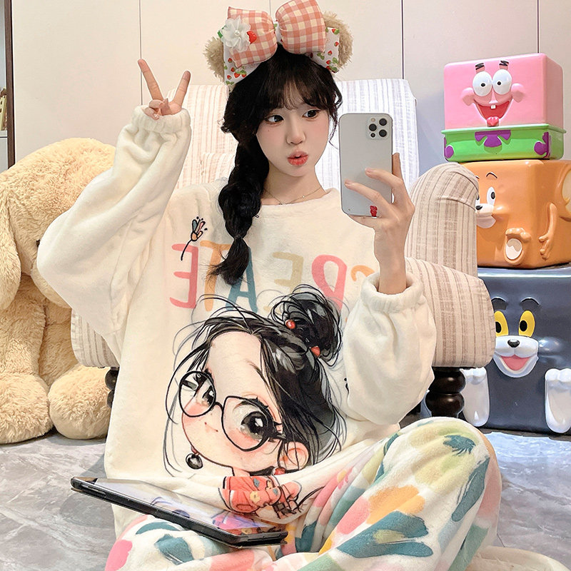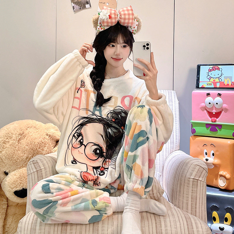 珊瑚绒睡衣女款秋冬季2025新款加绒加厚保暖法兰绒女士卡通家居服