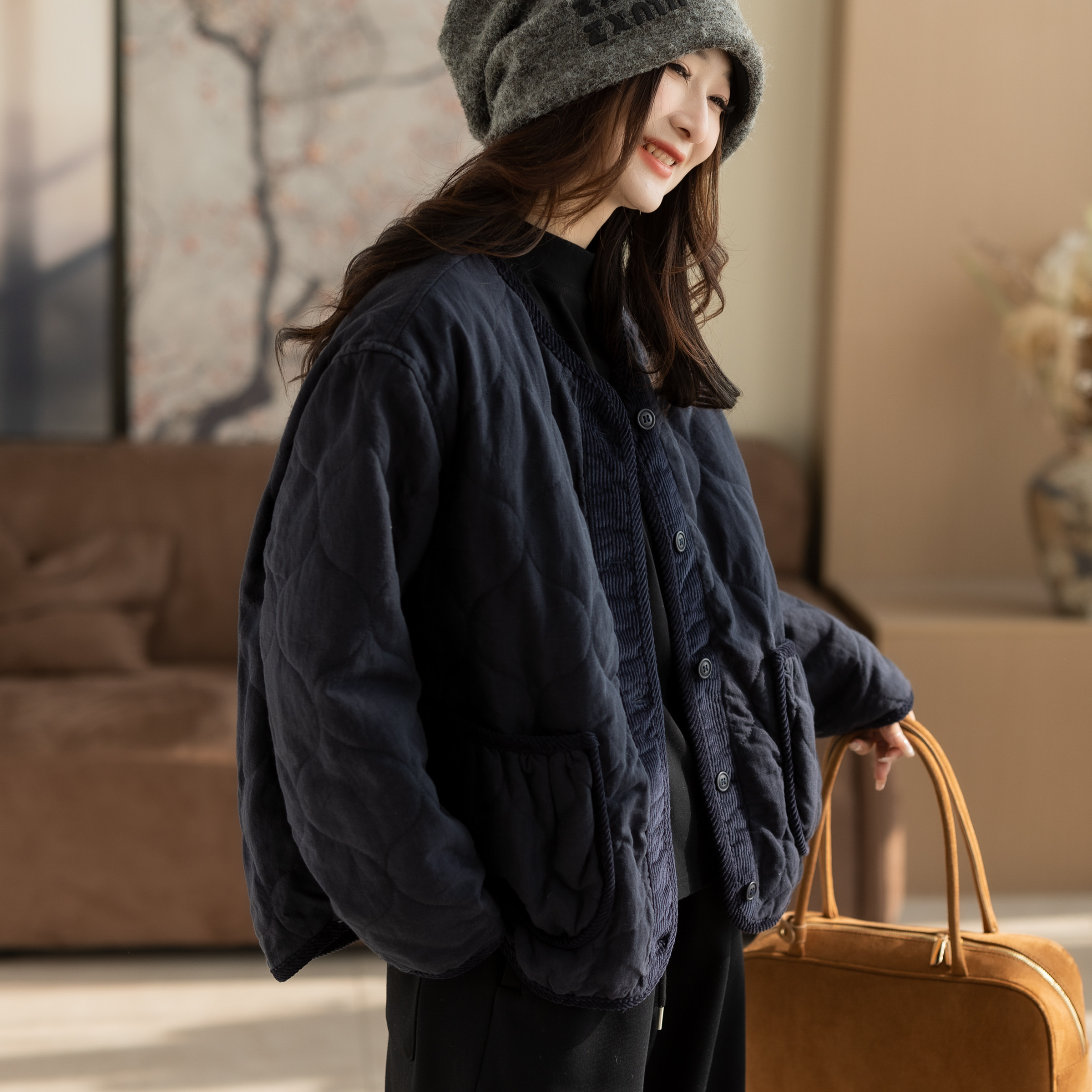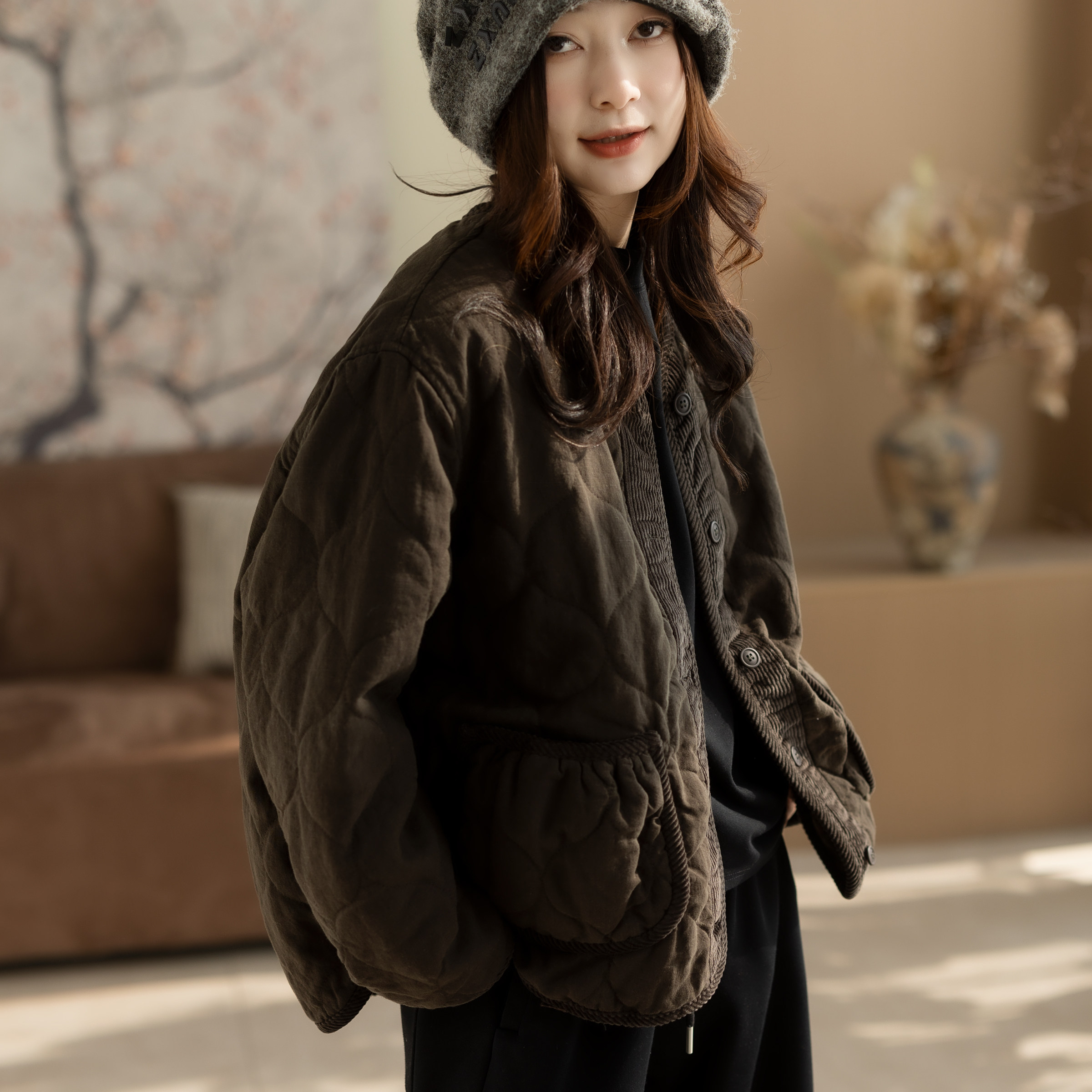 咖咪羽棉服女秋冬新款休闲文艺宽松流行好看通勤女装上衣外套棉袄