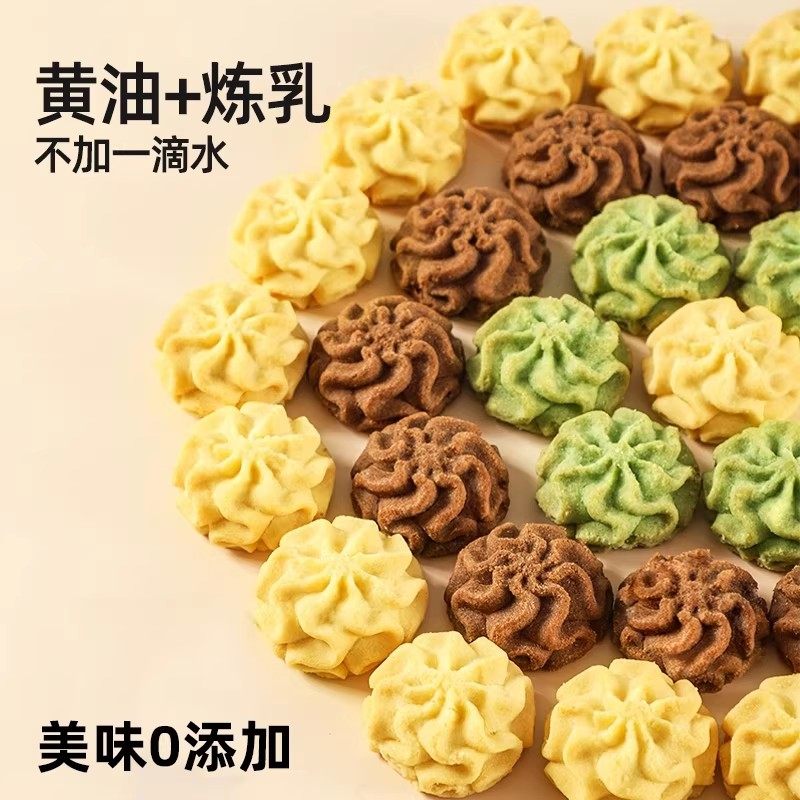 珍妮黄油曲奇小花曲奇饼干不甜的海盐年货零食点心抹茶美味巧克力