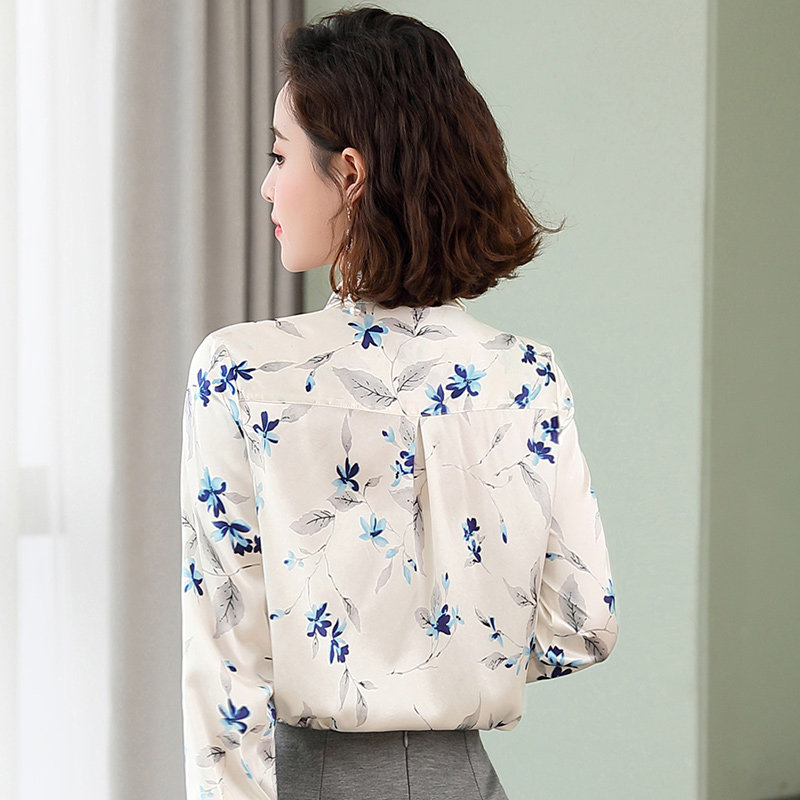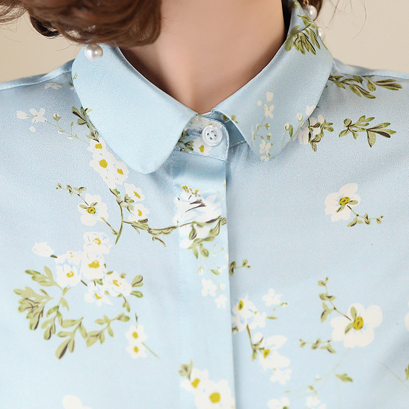 恒源祥重磅真丝上衣女春秋中国风翻领长袖时尚显瘦衬衣桑蚕丝衬衫