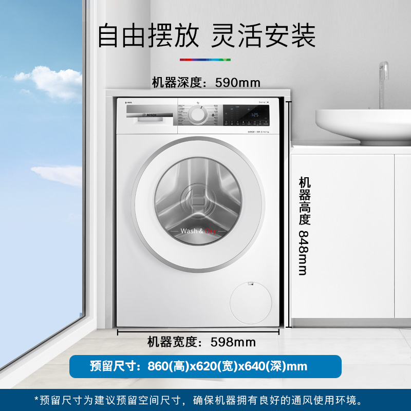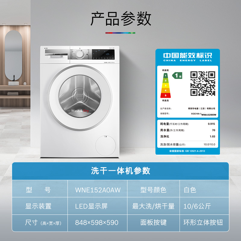 【政府补贴】博世4系10KG智能投放滚筒洗衣机除菌洗烘一体机52A0A