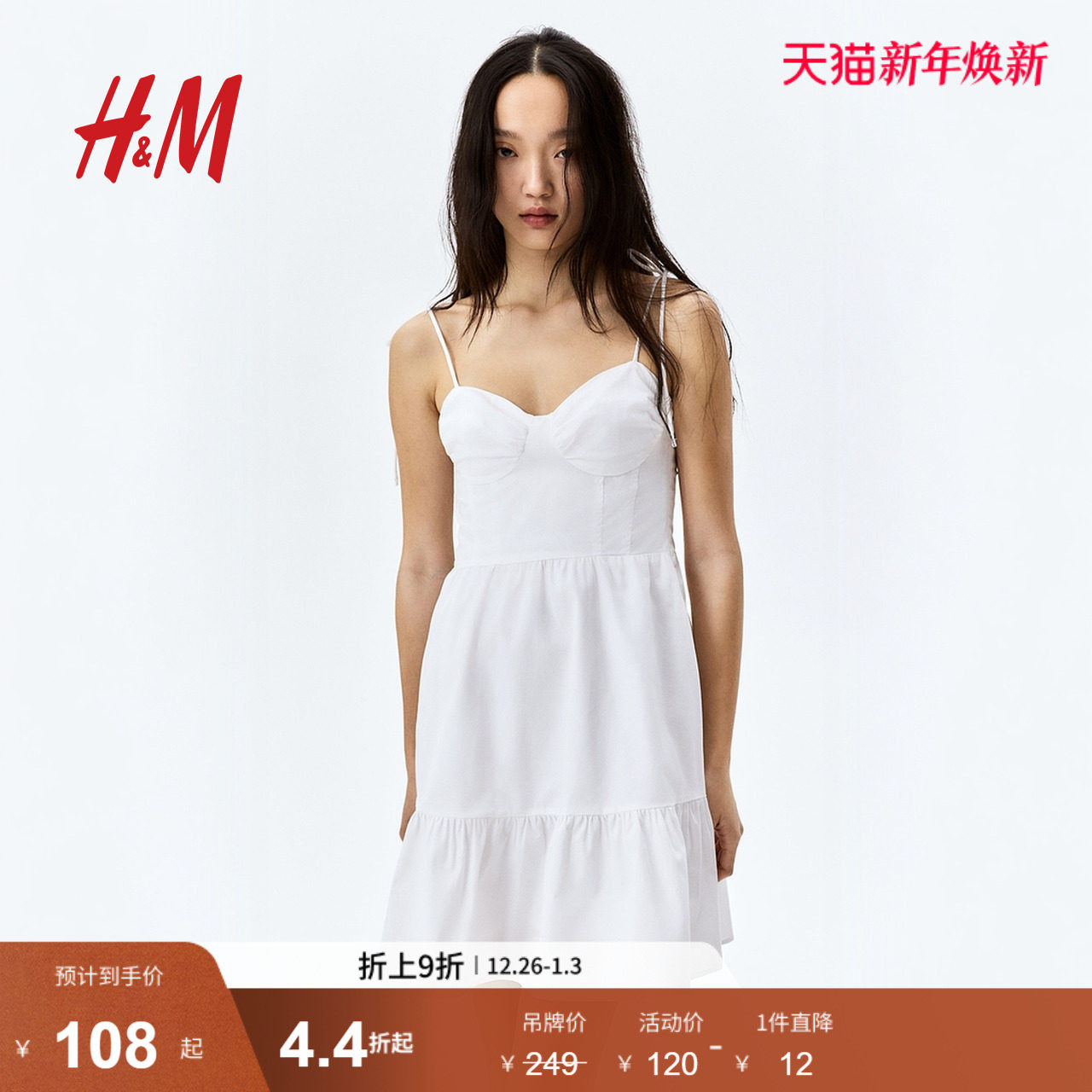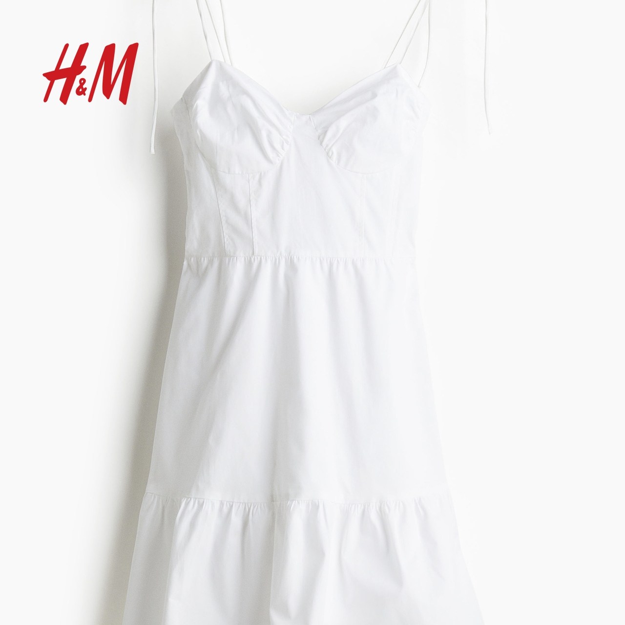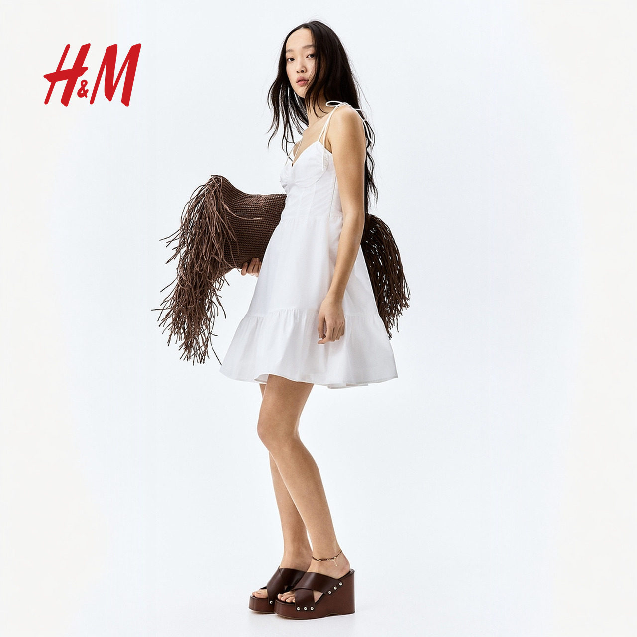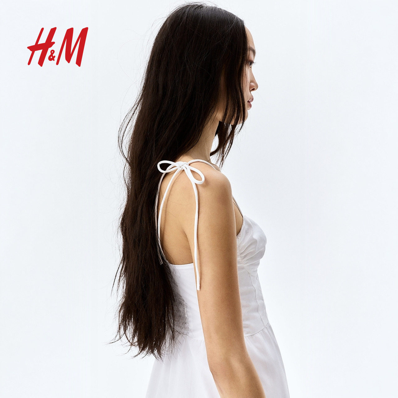 HM女装连衣裙2025年冬季新款上部系带府绸连衣裙1274544