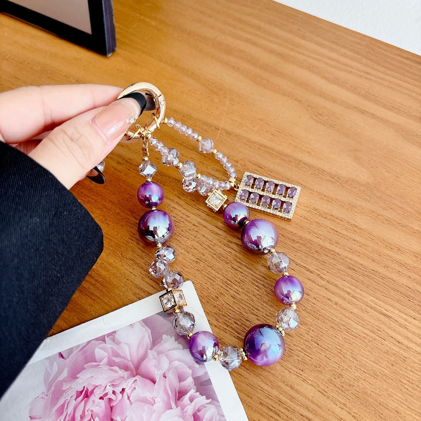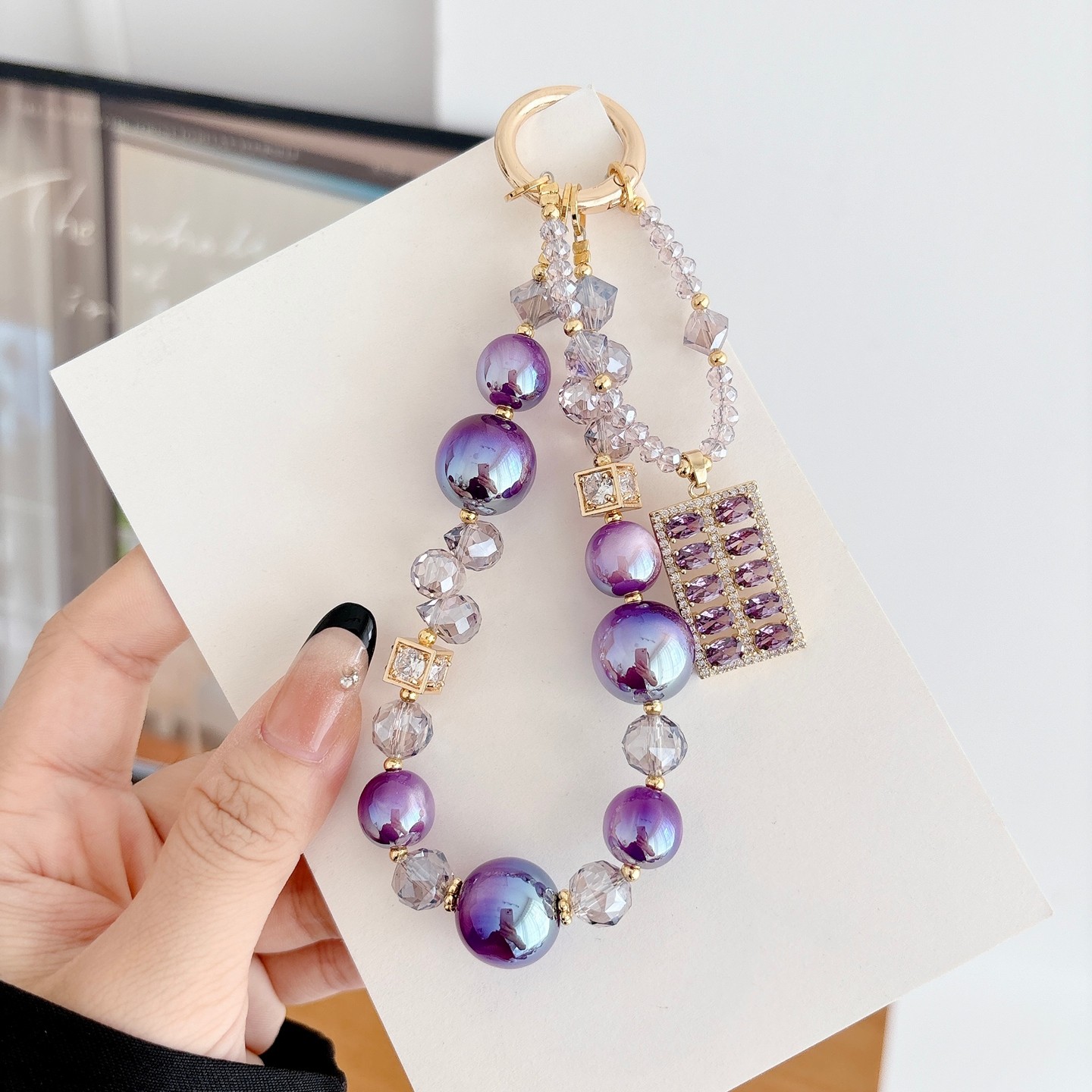 樱声紫色锆石算盘吊坠手机挂绳链轻奢小众精致高级感水晶挂饰超好看包包钥匙扣ccd相机防丢安全挂链带夹片女
