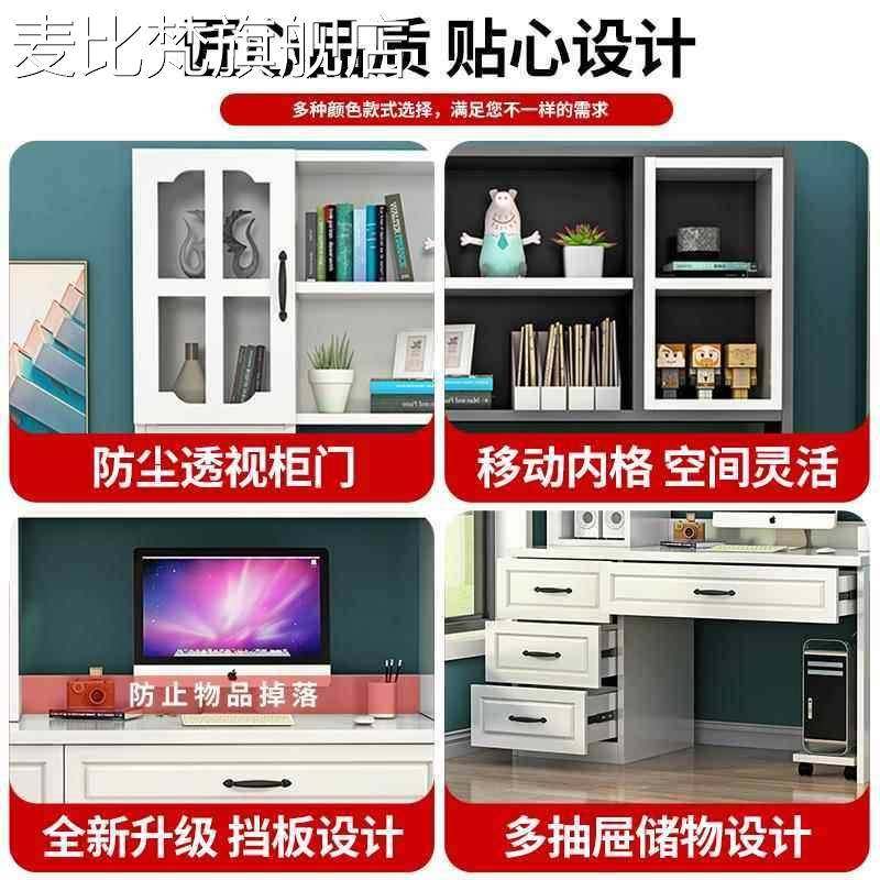 麦比梵实木电脑桌书桌书架一体桌书柜组合儿童写字桌家用简约学生学习桌摆件饰品床笠拉车