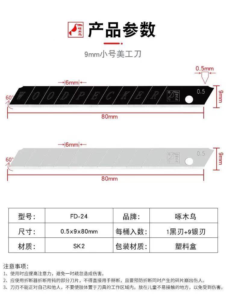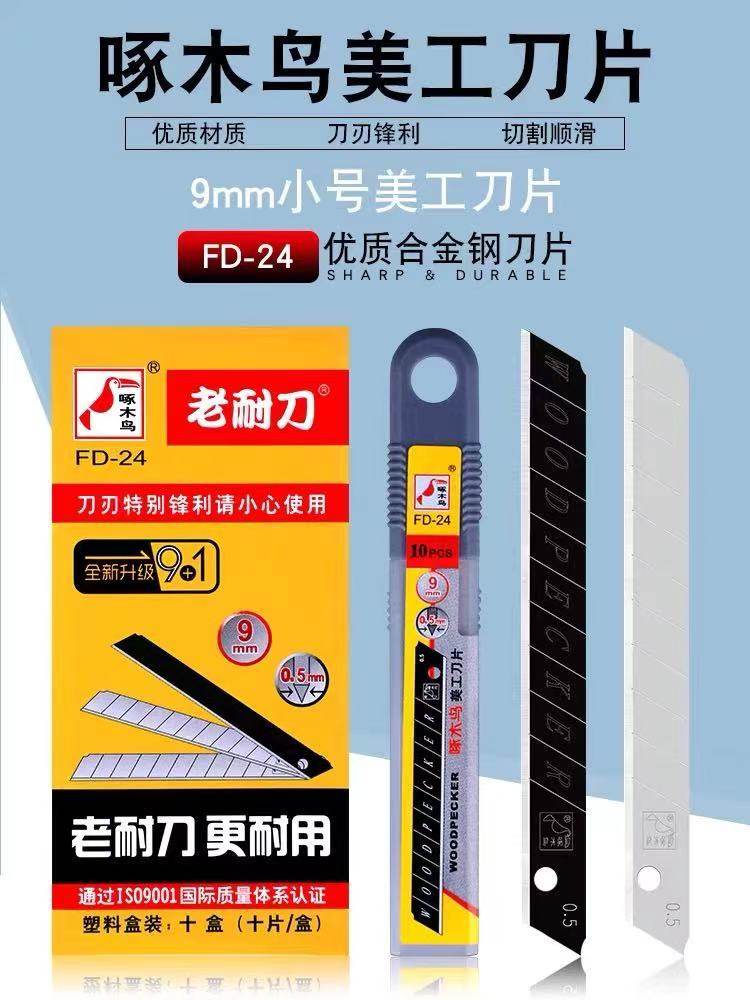 啄木鸟FD-24小号加厚9MM壁纸刀片美工刀片墙布刀片介刀片贴膜刀片加厚0.5mm厚度长度80mm小刀片60度角的包邮